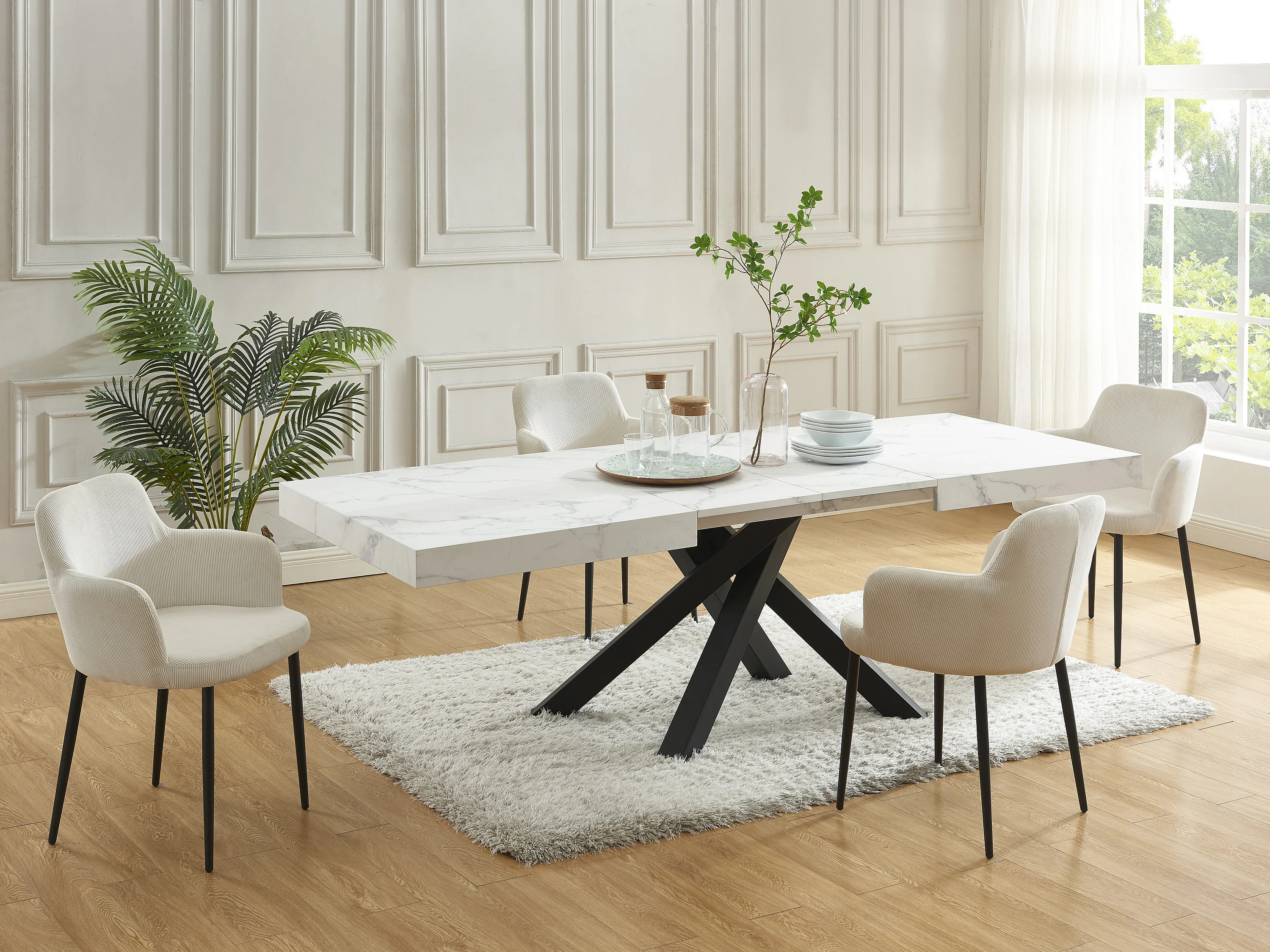Table à manger extensible 6 à 10 personnes en MDF et métal - Effet marbre blanc et noir - CATONAV