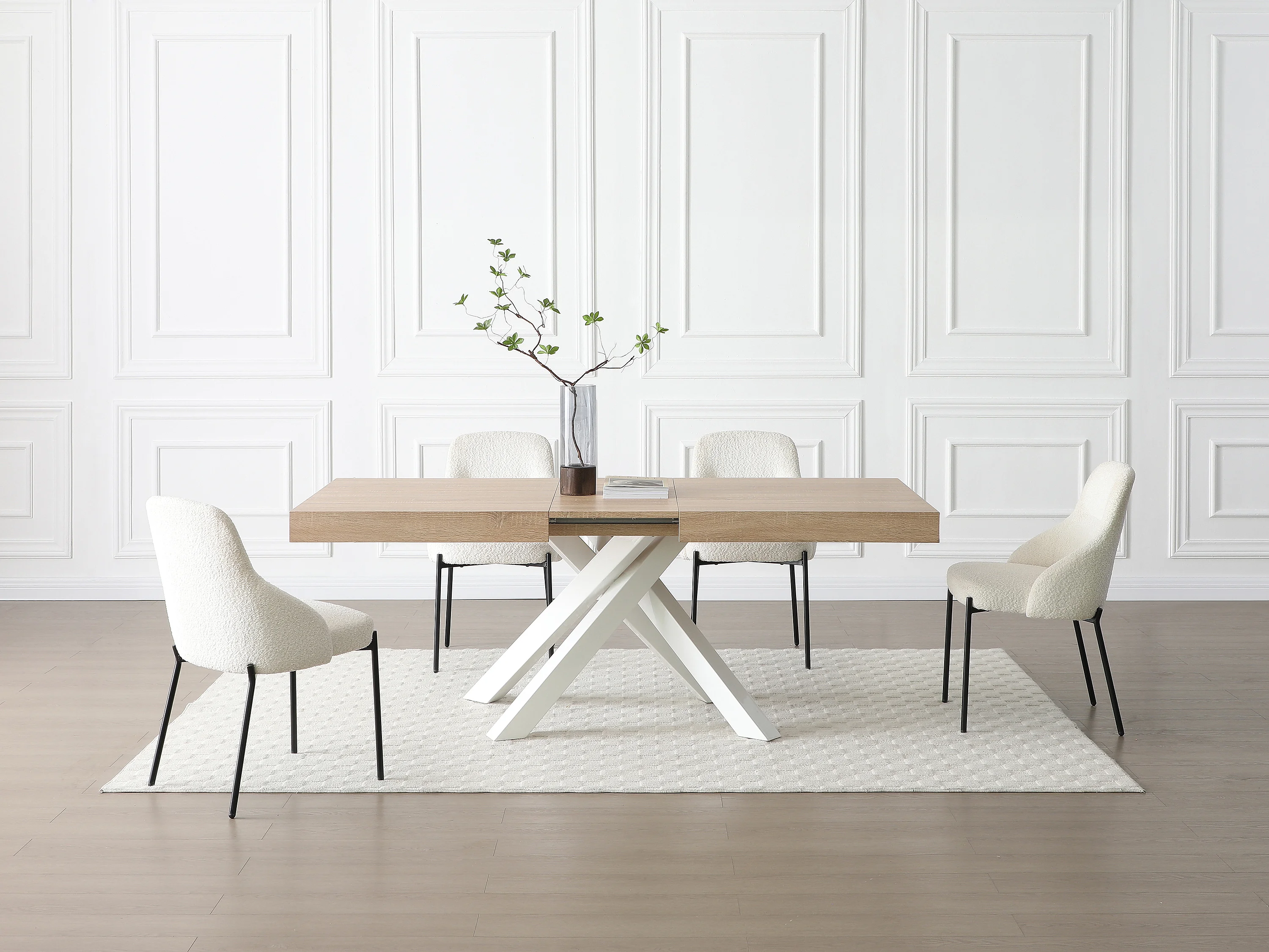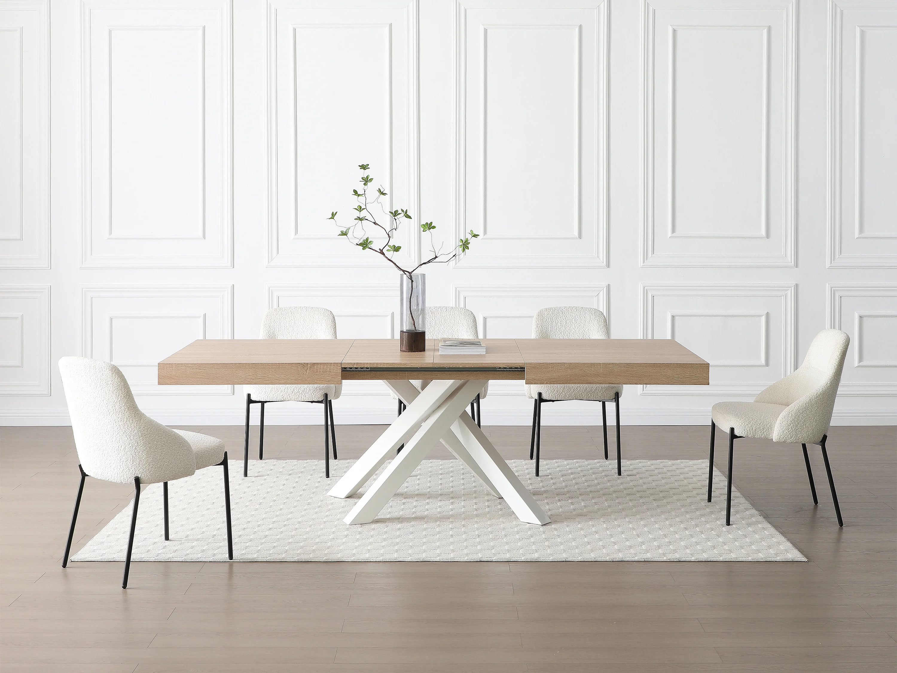 Table à manger extensible 6 à 10 personnes en MDF et métal - Naturel et blanc - CATONAV