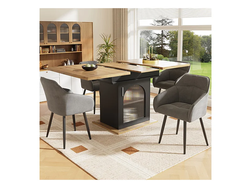 Table à manger extensible 6 à 8 personnes - avec espace de rangement - MDF - 110/140 x 80 x 76 cm