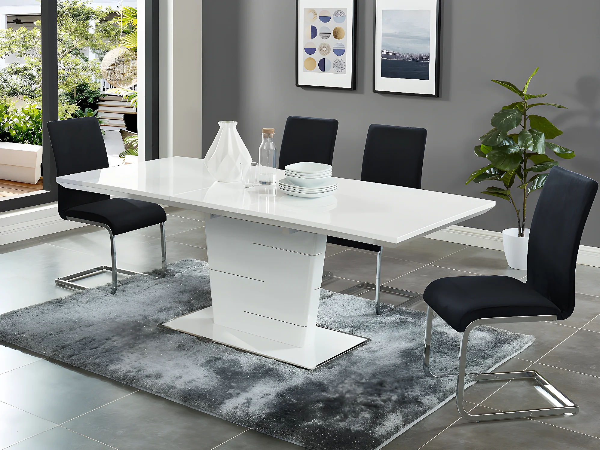 Table à manger extensible AMELLE - 6 à 8 personnes - MDF Laqué Blanc