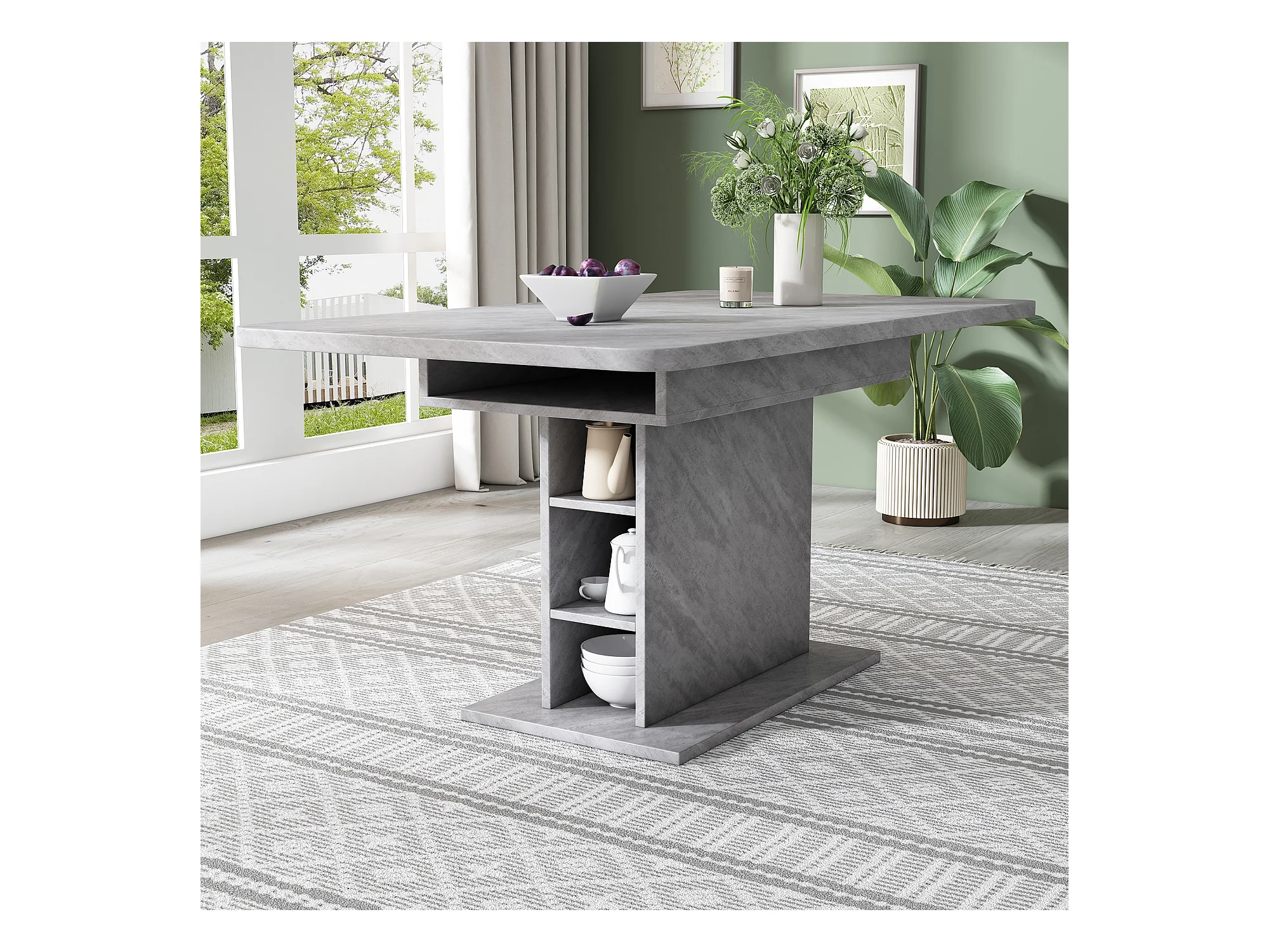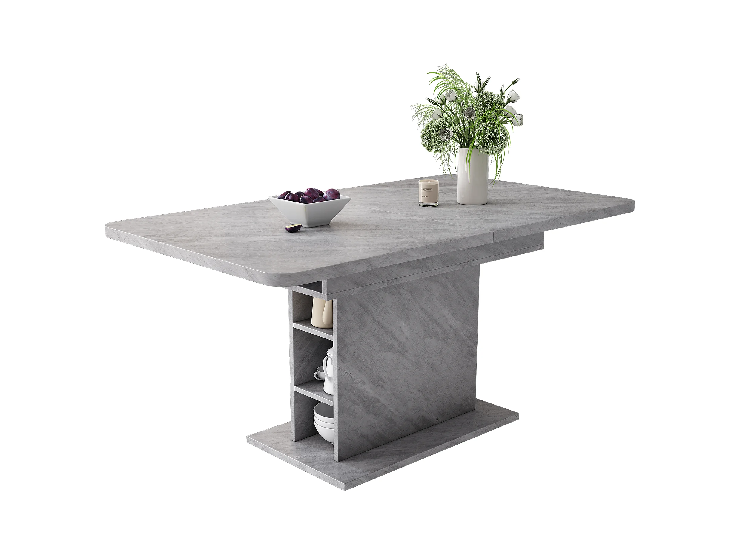 Table à manger extensible, avec rangement, design moderne, bois aggloméré, béton, (L93xP59.5xH9 cm)