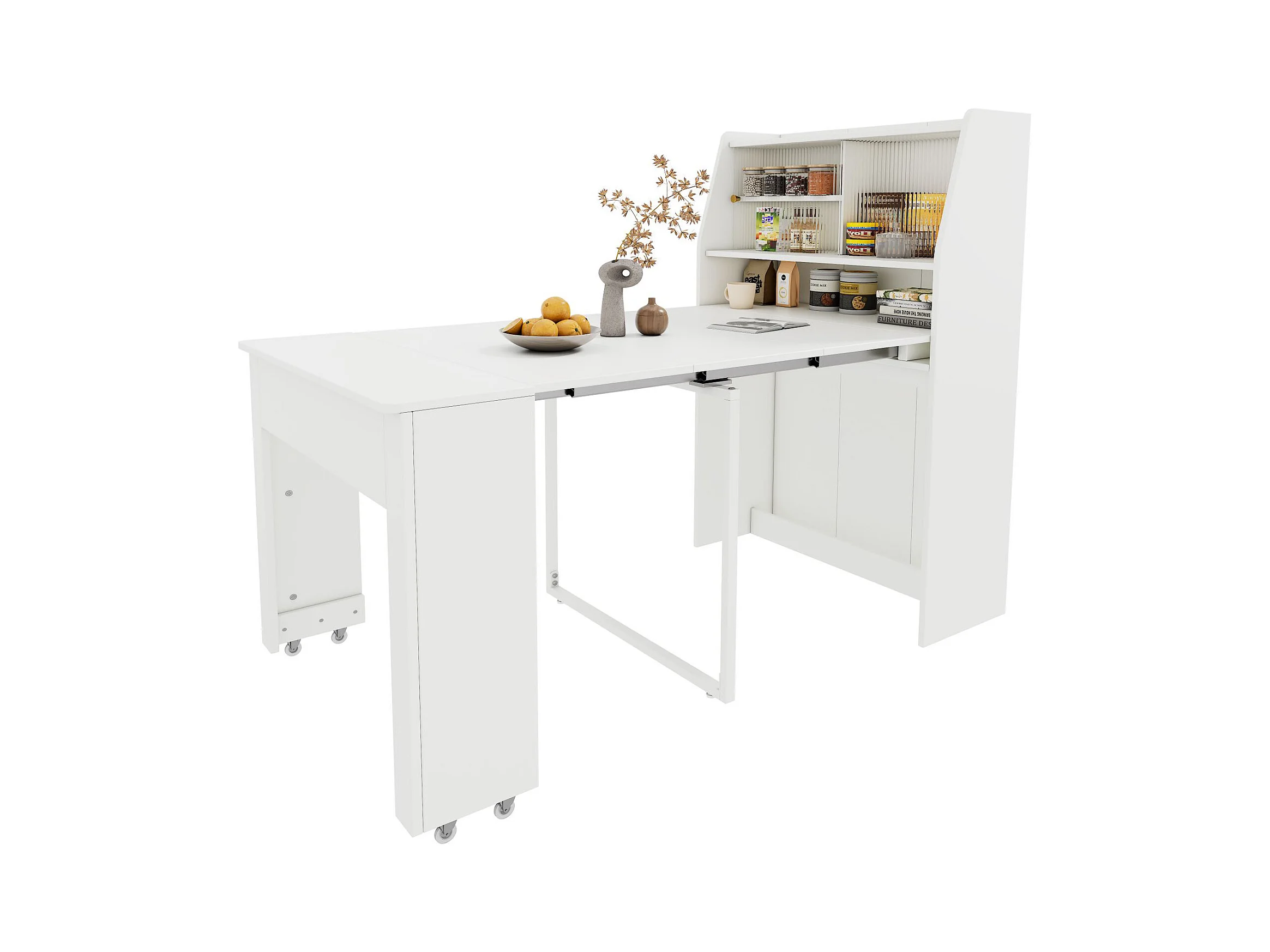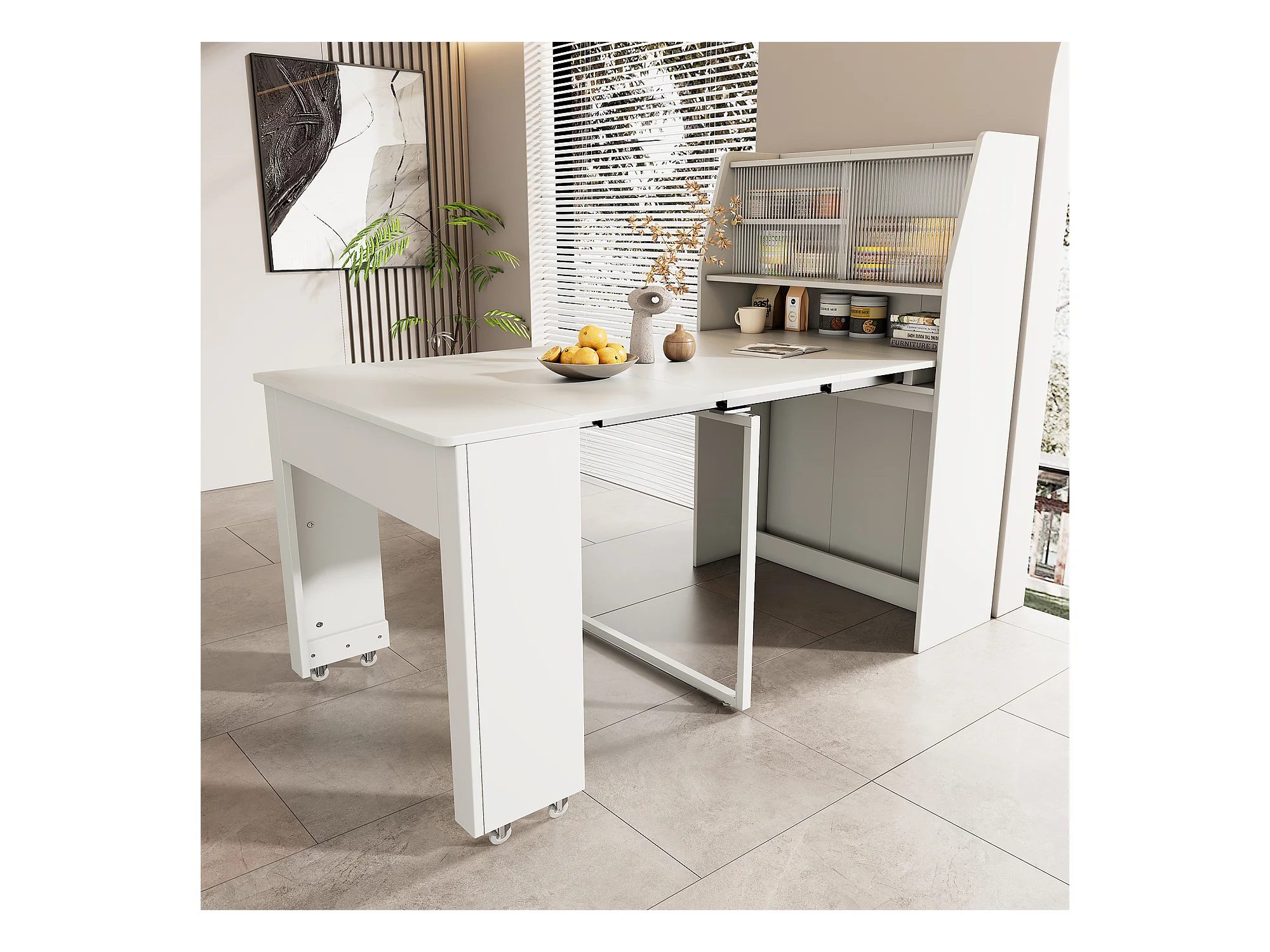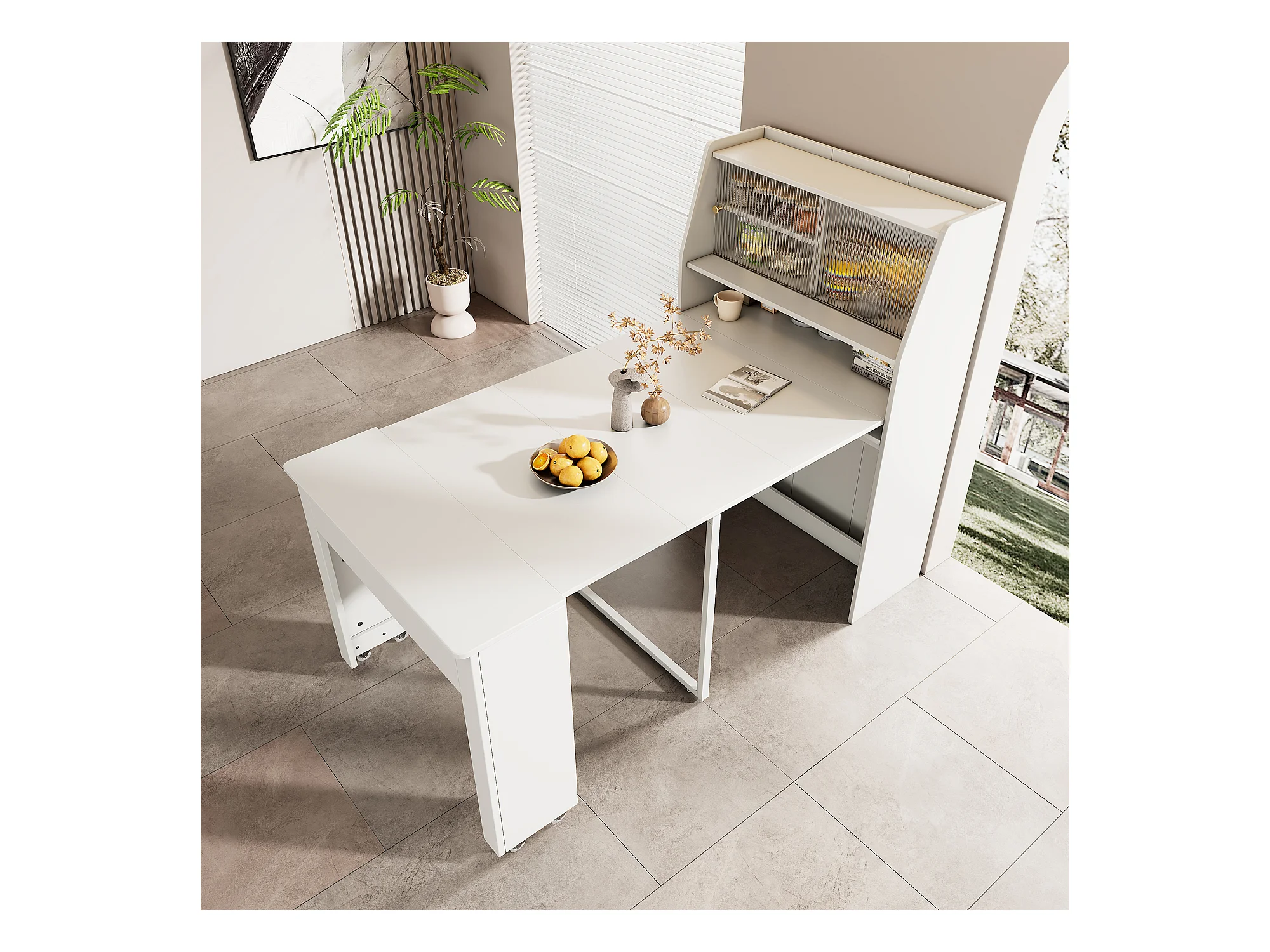 Table à manger extensible avec rangement, panneau de particules, blanc (52/132.5x80x76 cm)