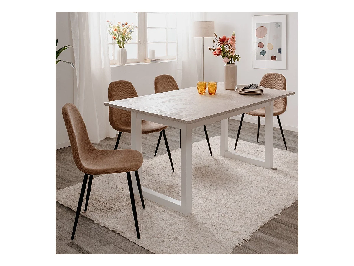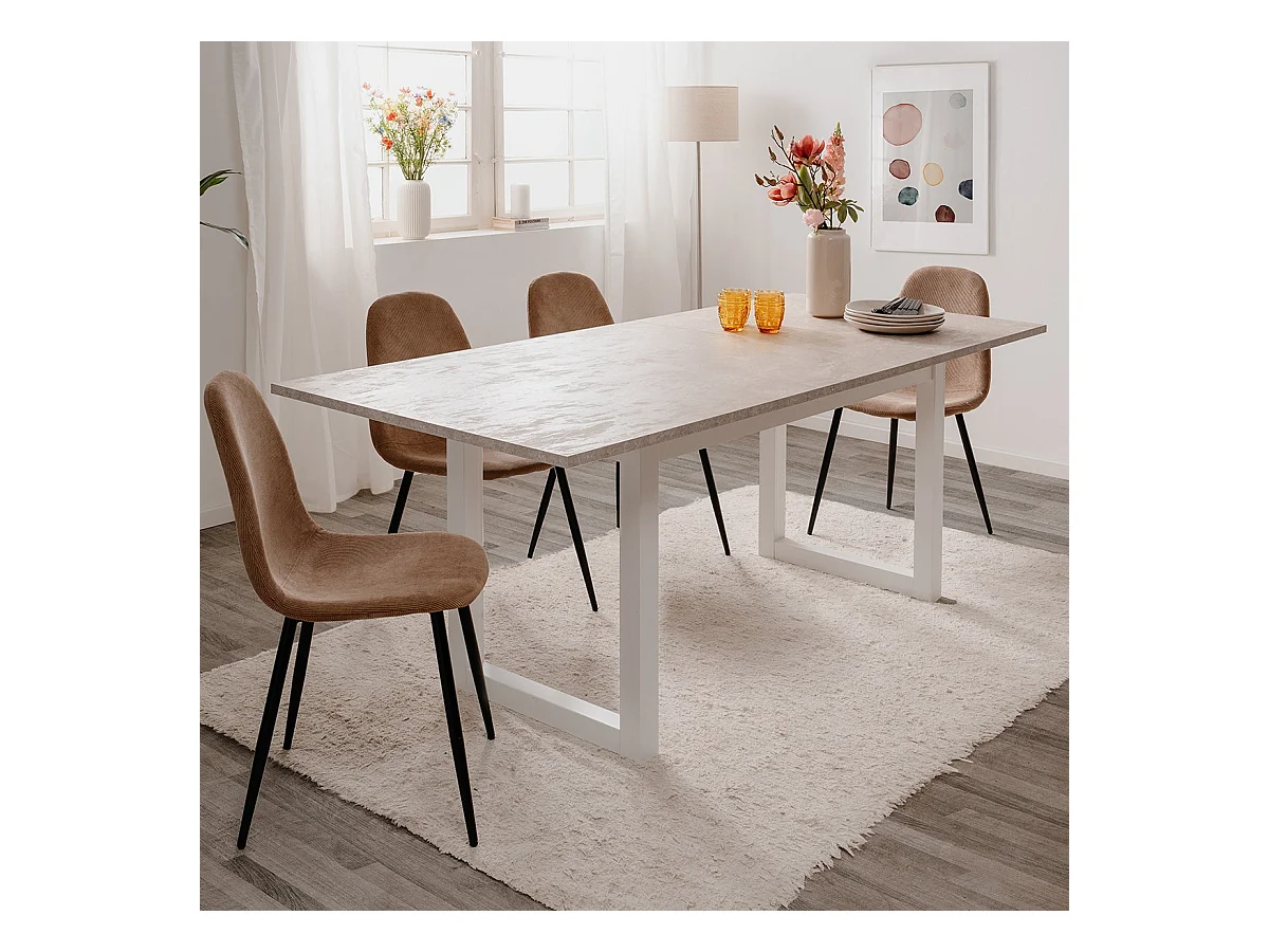 Table à Manger Extensible décor Travertin et Blanc L160/200 cm - HOUSTON