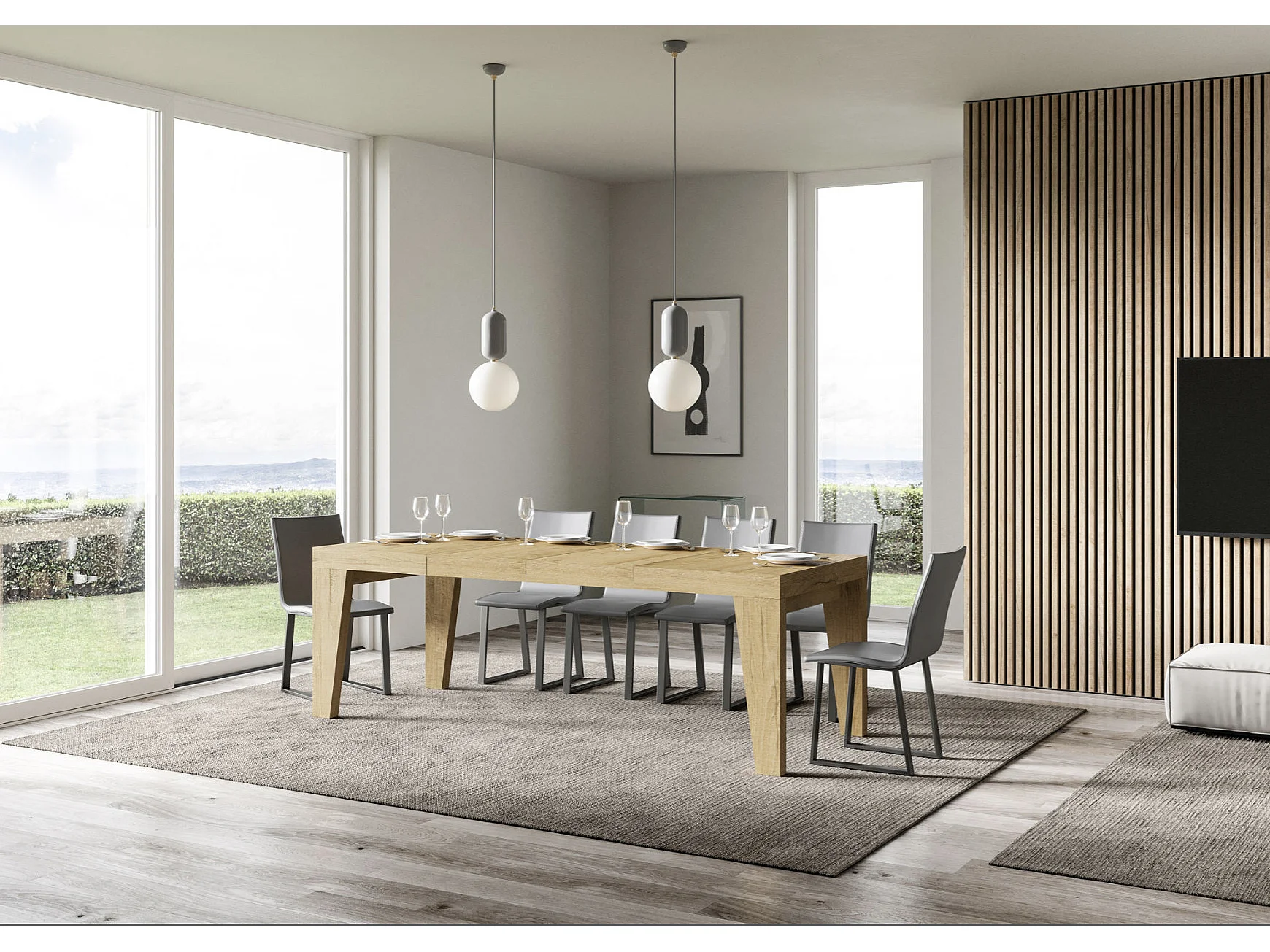Table à manger extensible bois Naxo-Couleur Naturel-4 pieds-2 rallonges épaisses-130 à 234cm