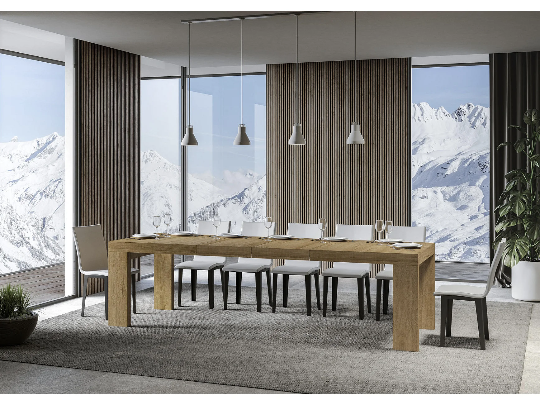 Table à manger extensible bois Ribo-Couleur Blanc-4 pieds-2 rallonges épaisses-180 à 284cm