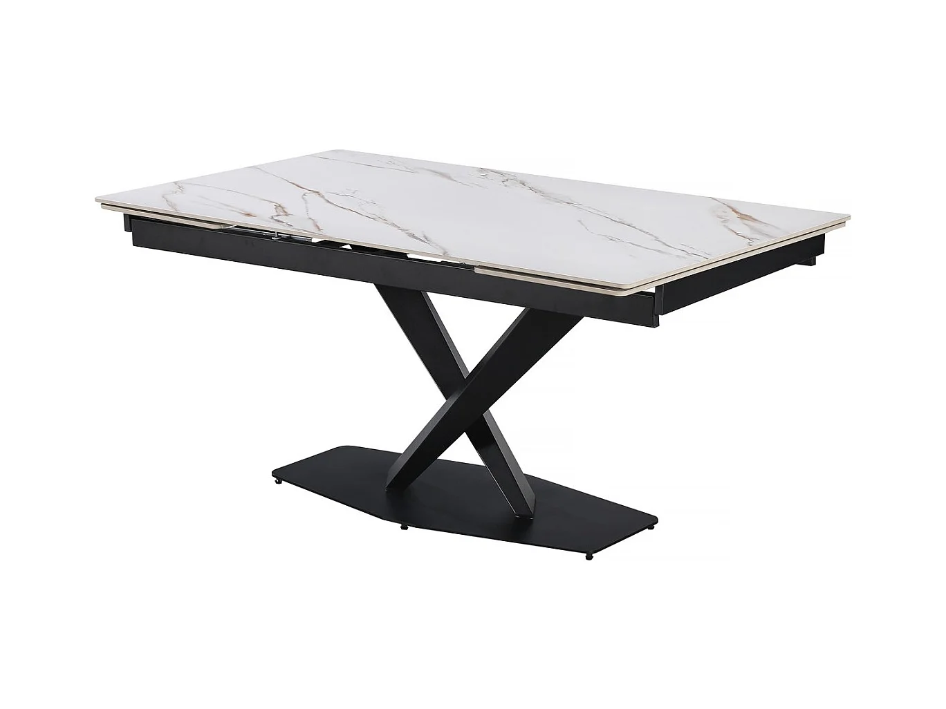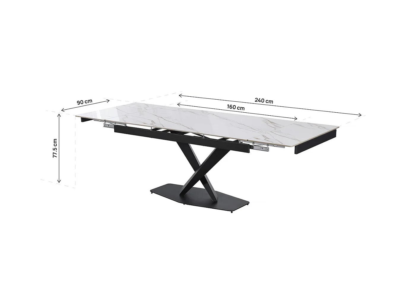 Table à manger extensible en céramique 6 à 10 personnes "Silence" - Blanc marbré gold