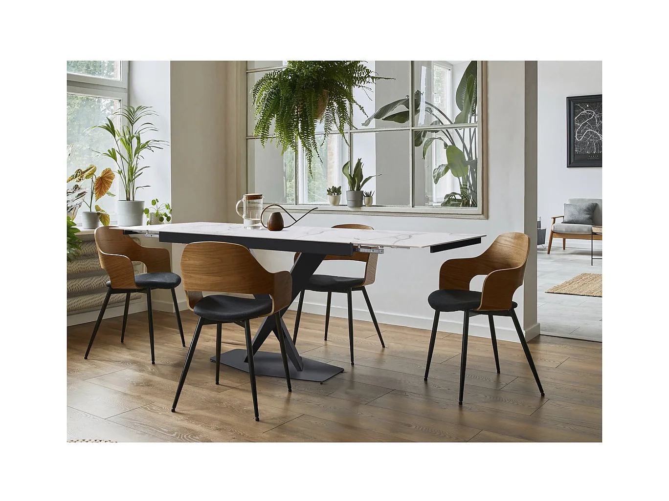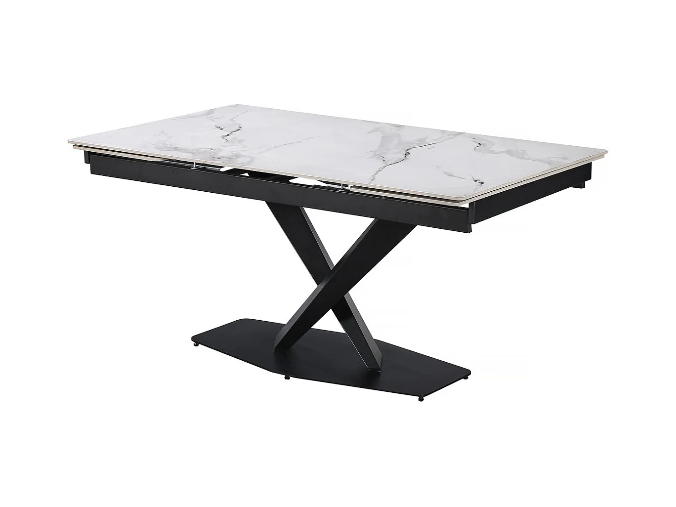 Table à manger extensible en céramique 6 à 10 personnes "Silence" - Blanc marbré gris