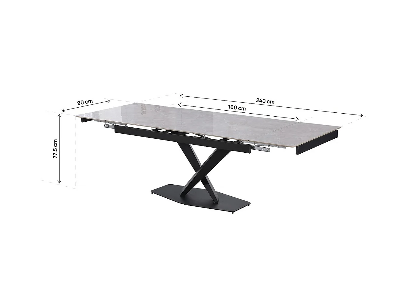 Table à manger extensible en céramique 6 à 10 personnes "Silence" - Gris marbré