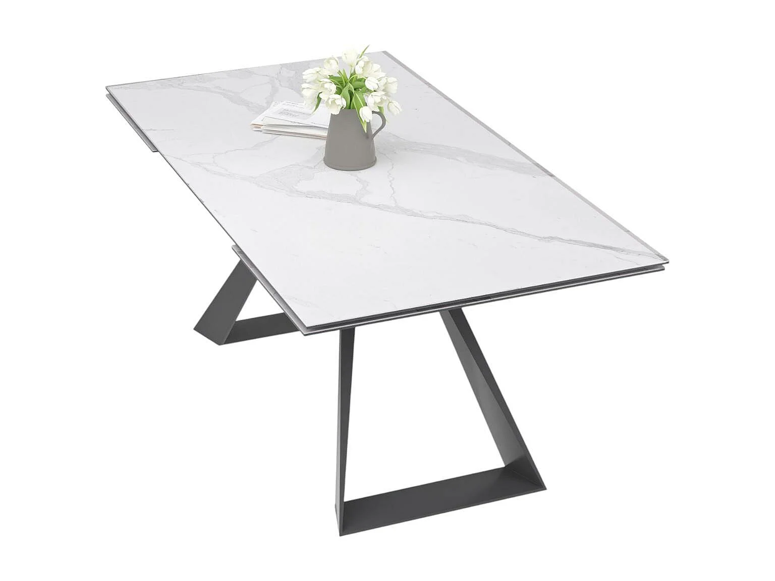 Table à manger extensible en céramique blanche 180-280 LOMBARDIE