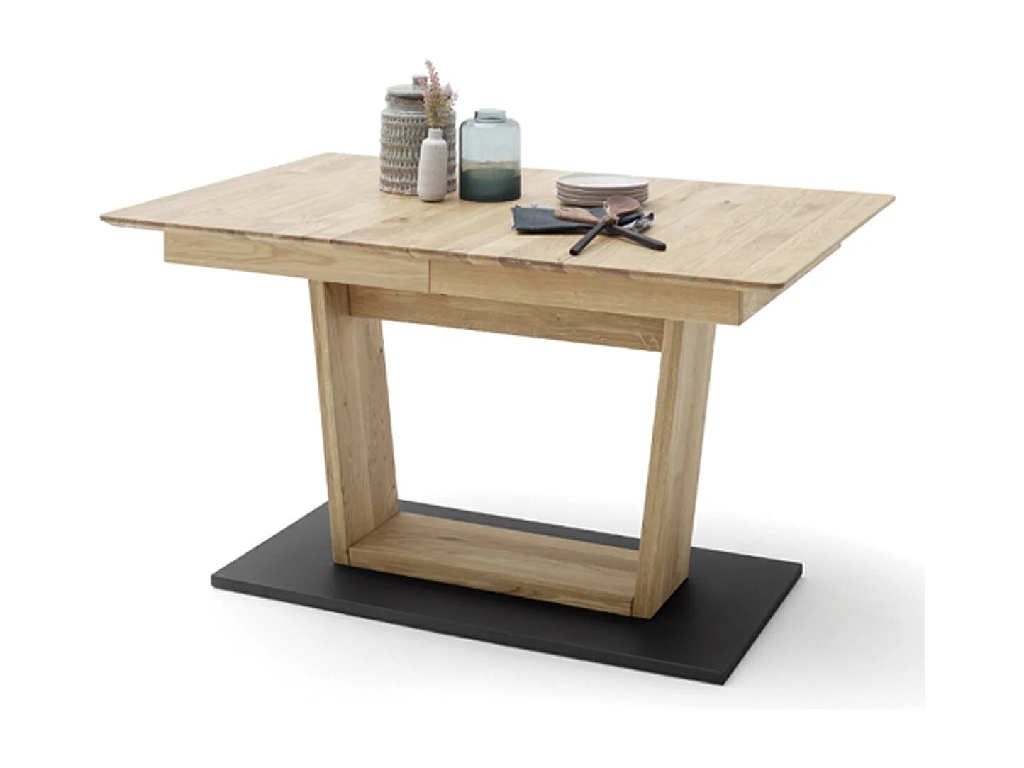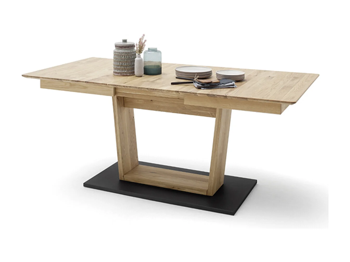 Table à manger extensible en chêne sauvage et noir - L.180-225 x H.77 x P.90 cm