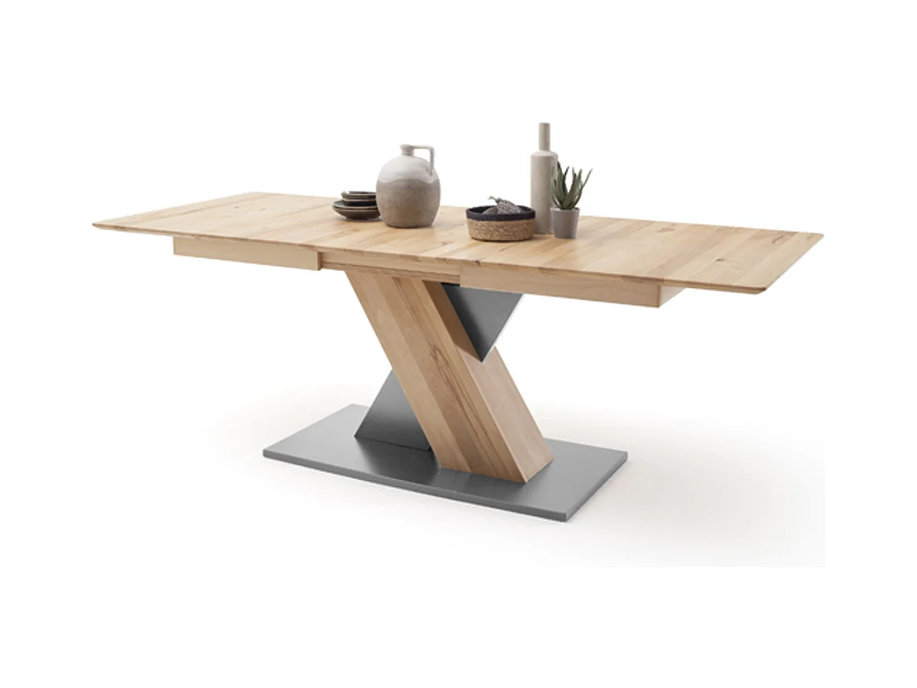 Table à manger extensible en hêtre massif / gris - L.140-185 x H.77 x P.90 cm