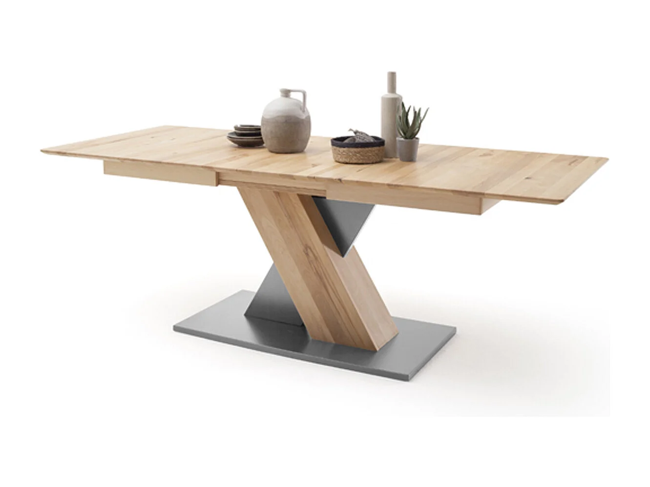 Table à manger extensible en hêtre massif / gris - L.180-225 x H.77 x P.90 cm