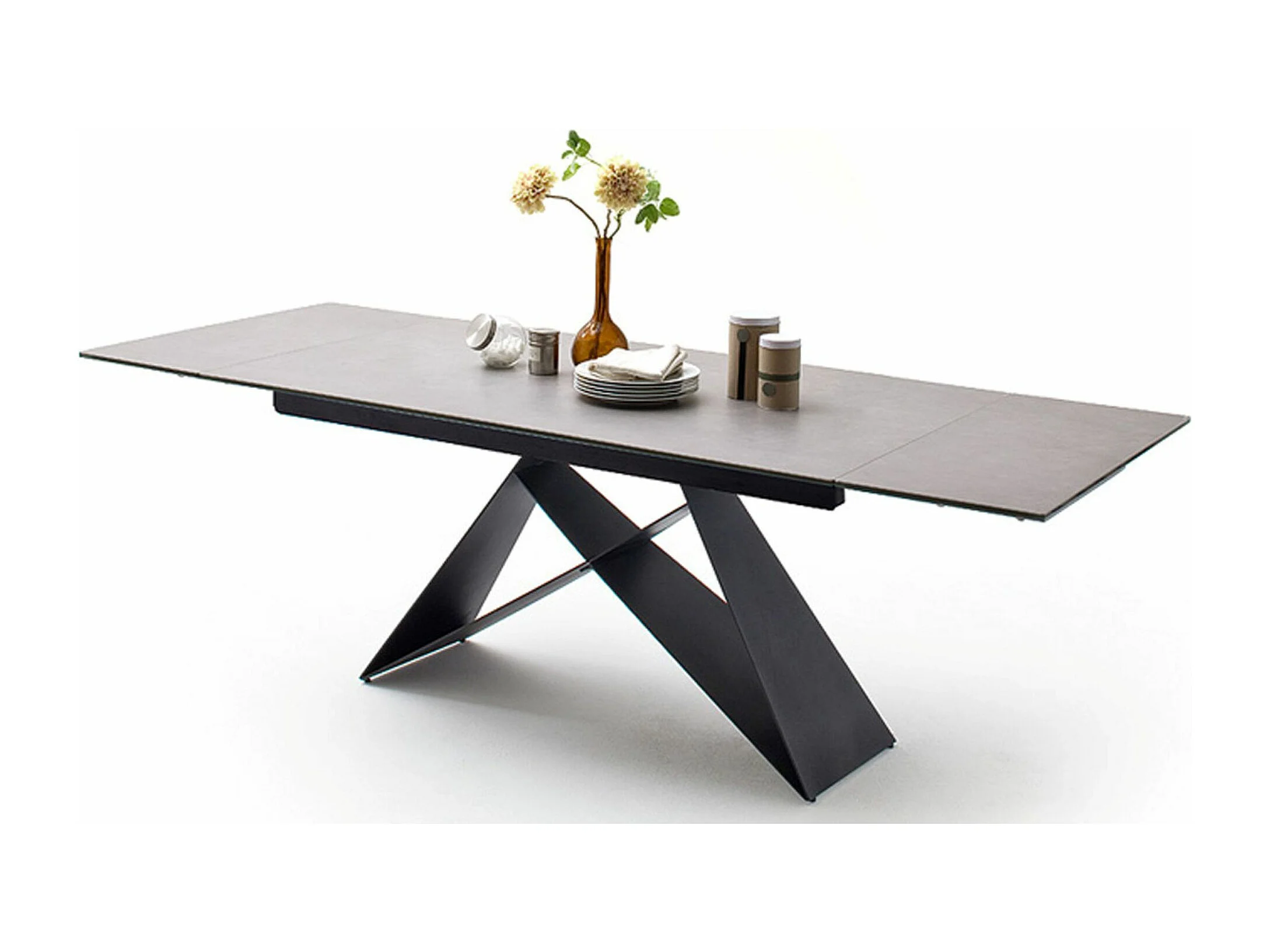 Table à manger extensible en métal noir mat et surface céramique gris clair - L.160-240 x H.75 x P.90 cm