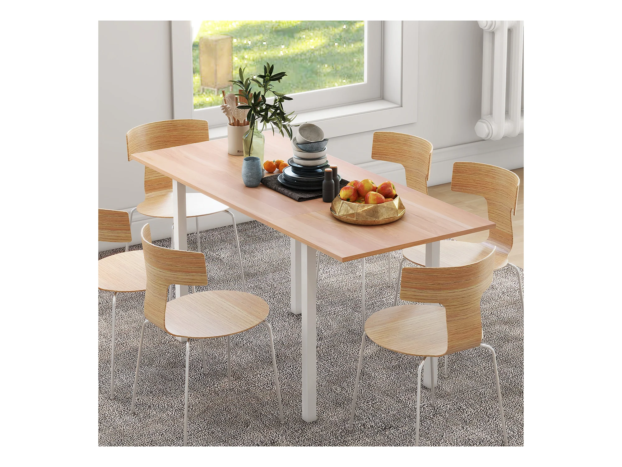 Table à manger extensible grand plateau 6 personnes acier MDF bois clair