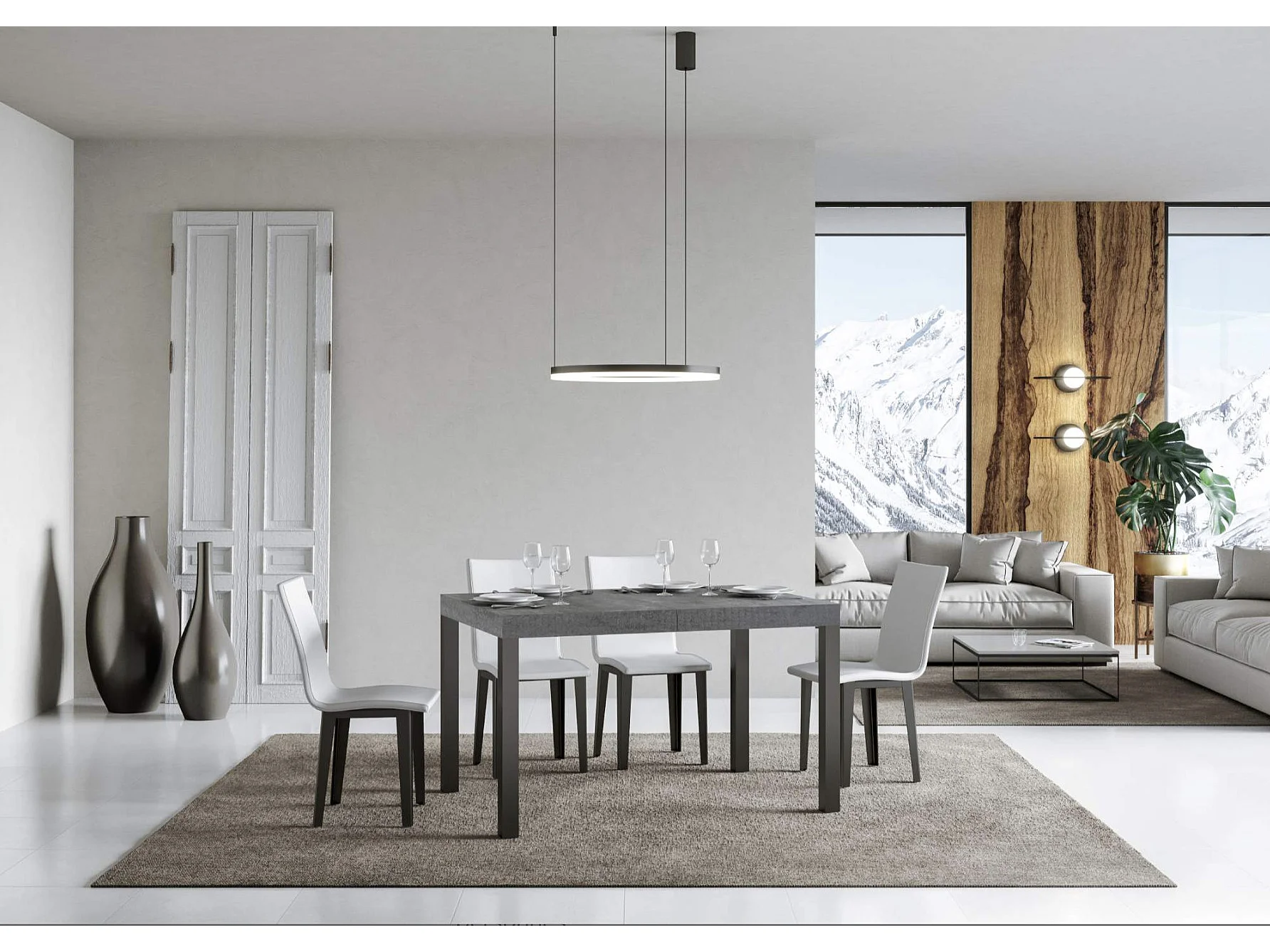 Table à manger extensible Karry-Couleur Gris ciment-4 pieds-140 à 224cm