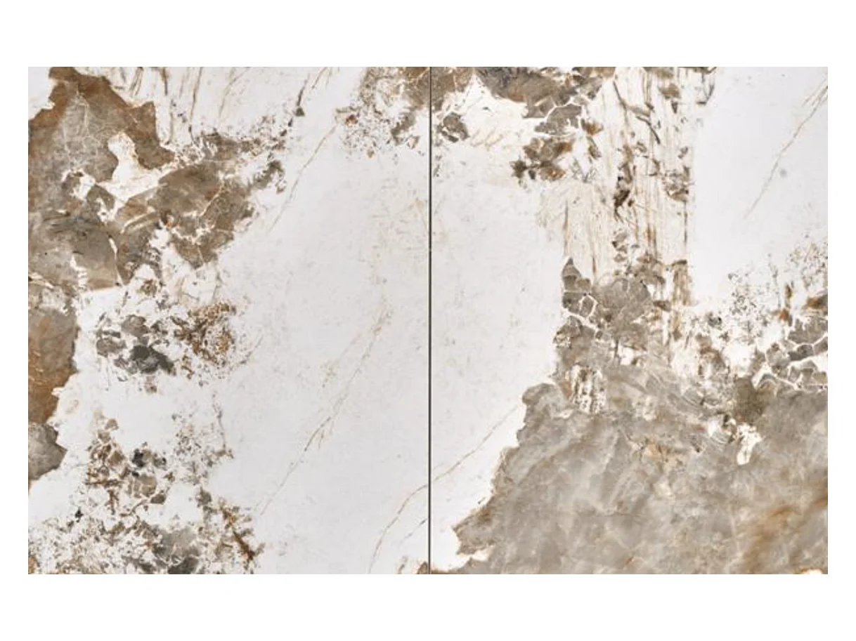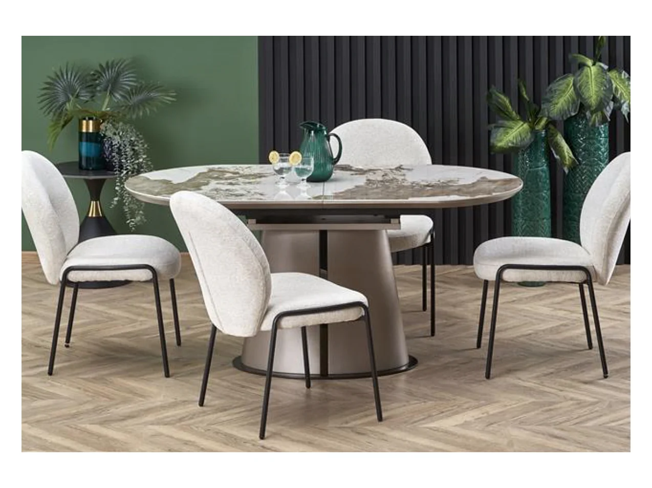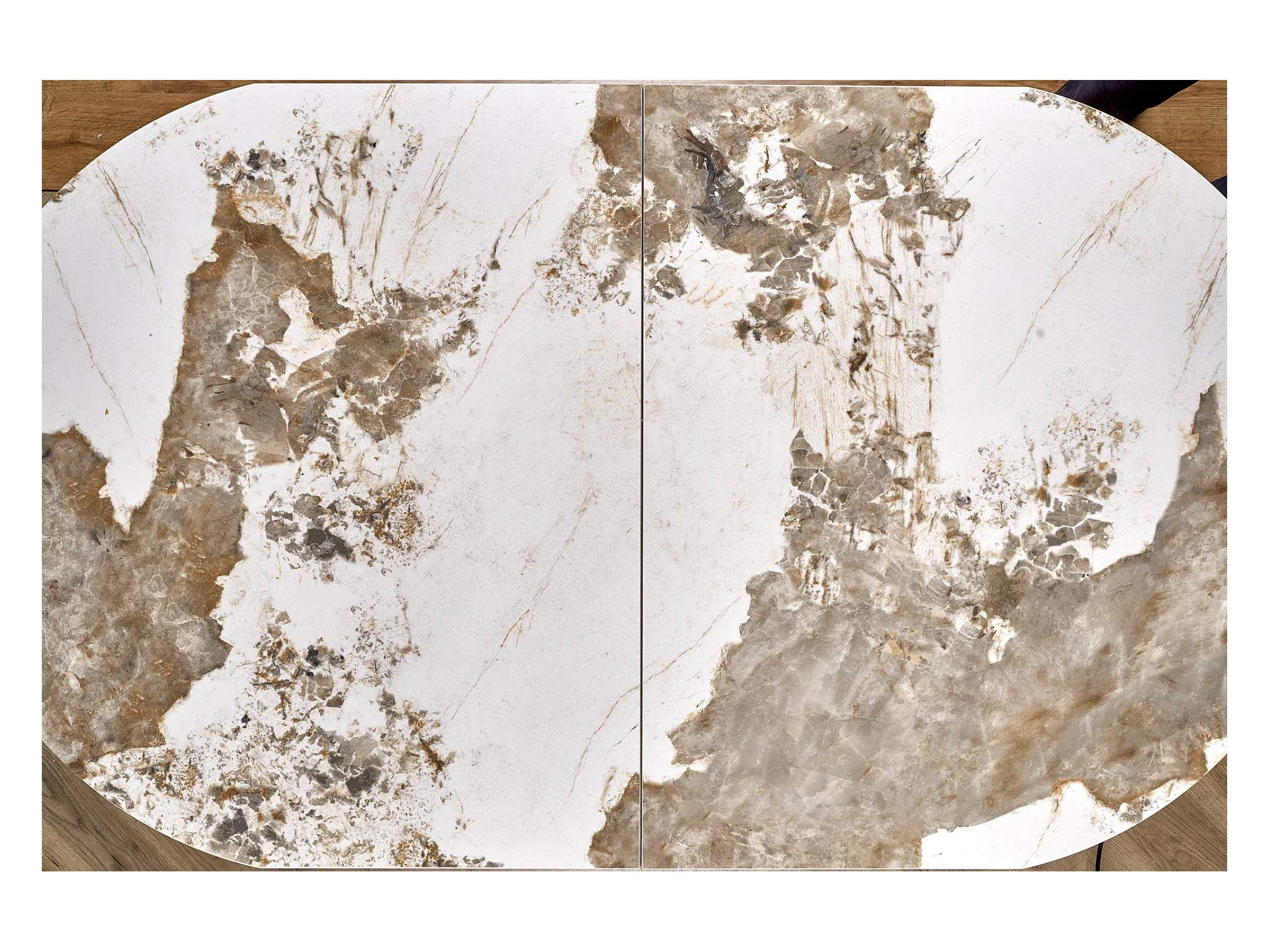 Table à manger extensible métal & marbre cappuccino 160cm Calexo