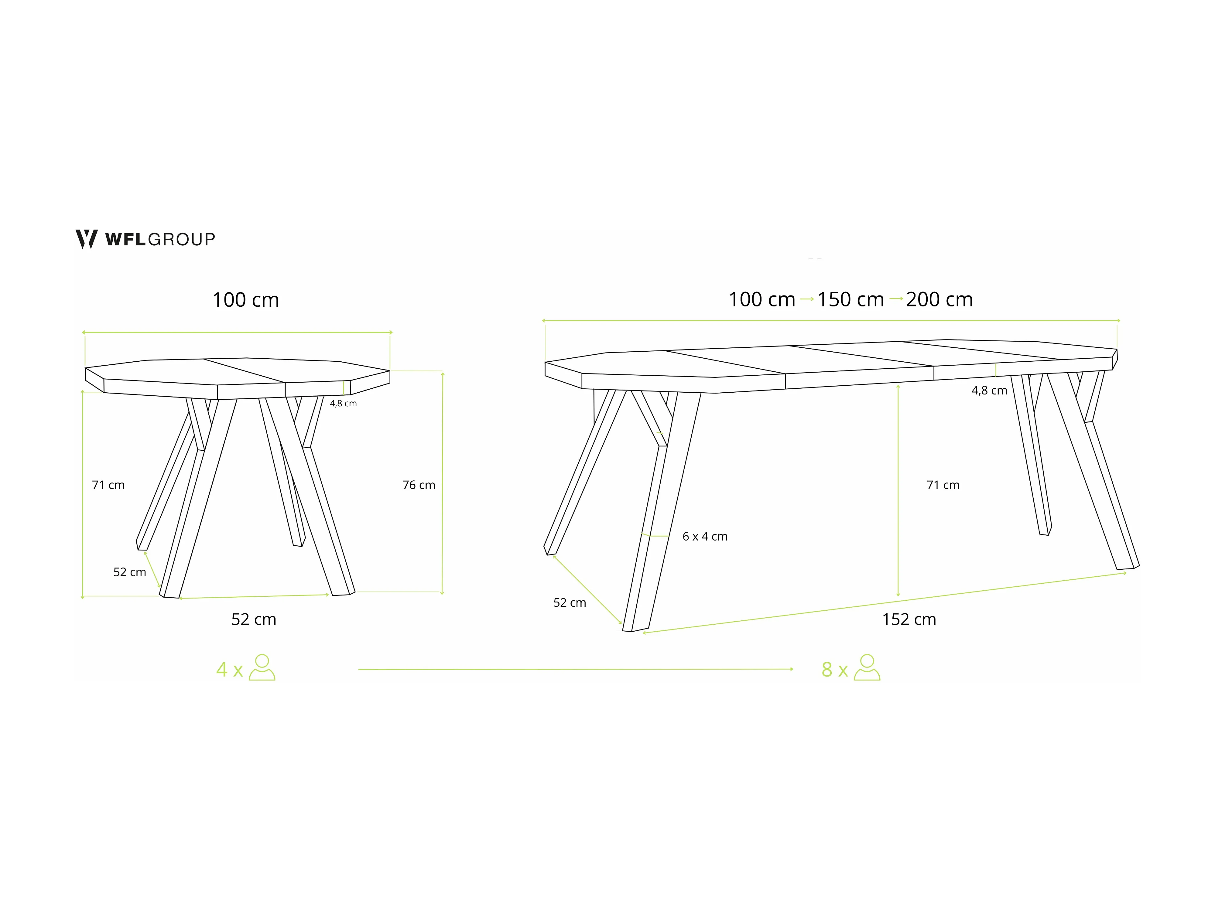 Table à Manger Extensible Moderne avec Pieds Noirs - Plateau en Panneau Stratifié, Style Loft - Chêne Wotan - 100/150