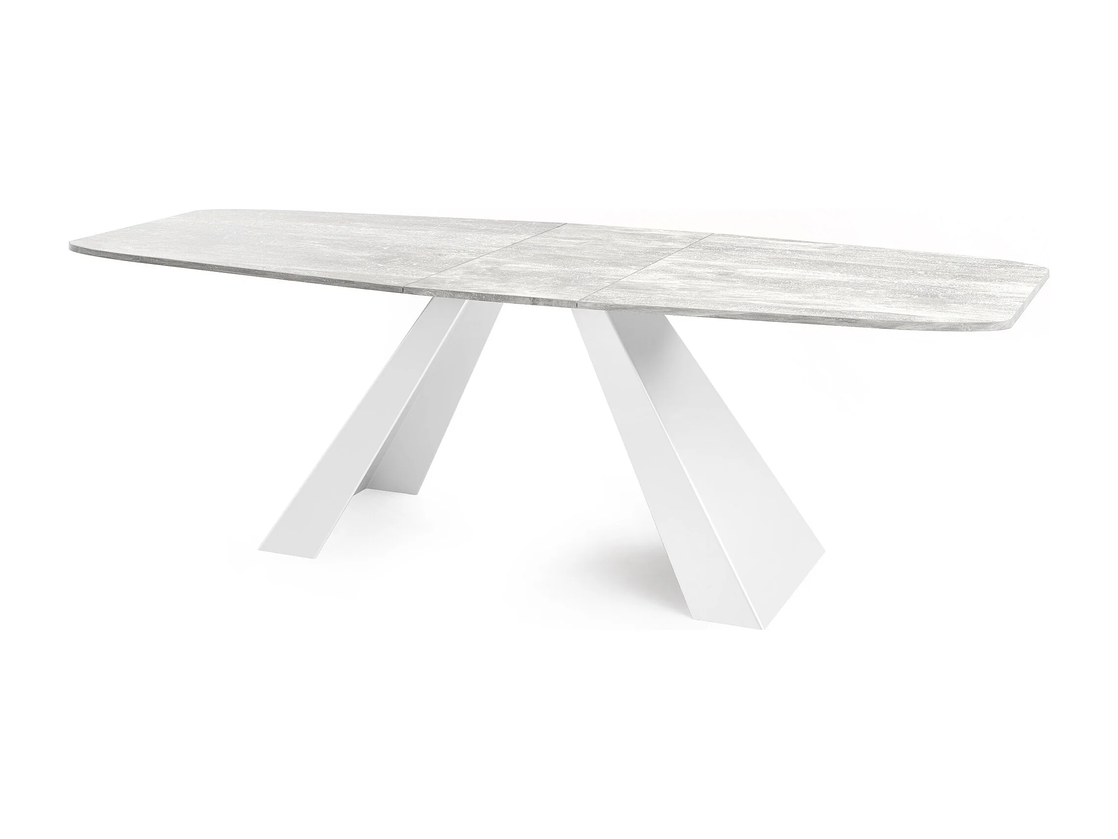 Table-à-Manger Extensible Monte Design Moderne, Table Rectangulaire - Extensible de 160 cm à 200 cm, Pieds Métalliques Blancs - 160x80 cm - Béton Gris
