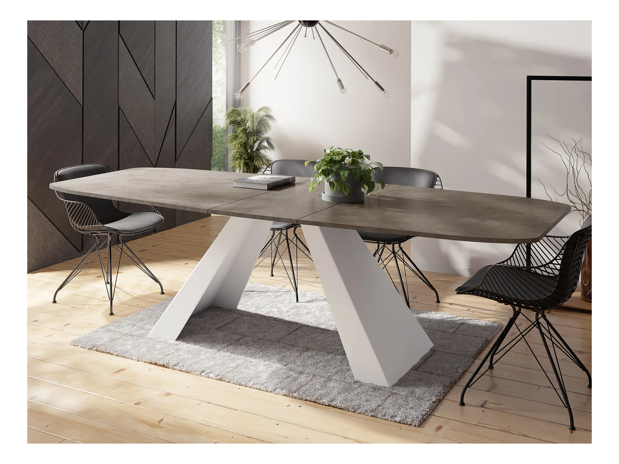 Table-à-Manger Extensible Monte Design Moderne, Table Rectangulaire - Extensible de 180 cm à 220 cm, Pieds Métalliques Blancs - 180x90 cm - Béton Gris Chicago
