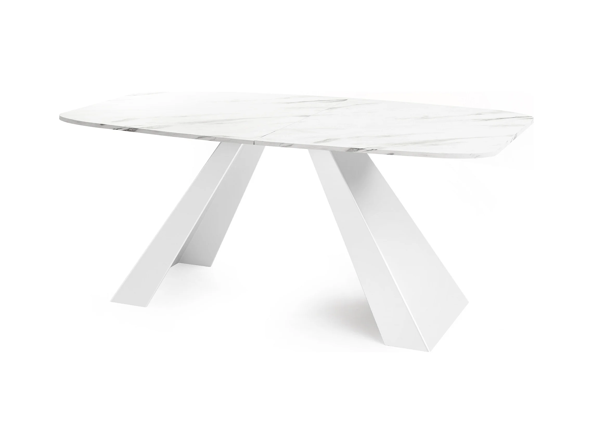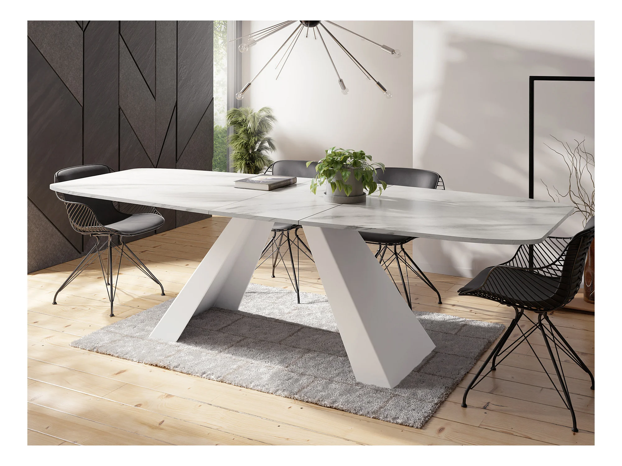 Table-à-Manger Extensible Monte Design Moderne, Table Rectangulaire - Extensible de 180 cm à 220 cm, Pieds Métalliques Blancs - 180x90 cm - Marbre Blanc