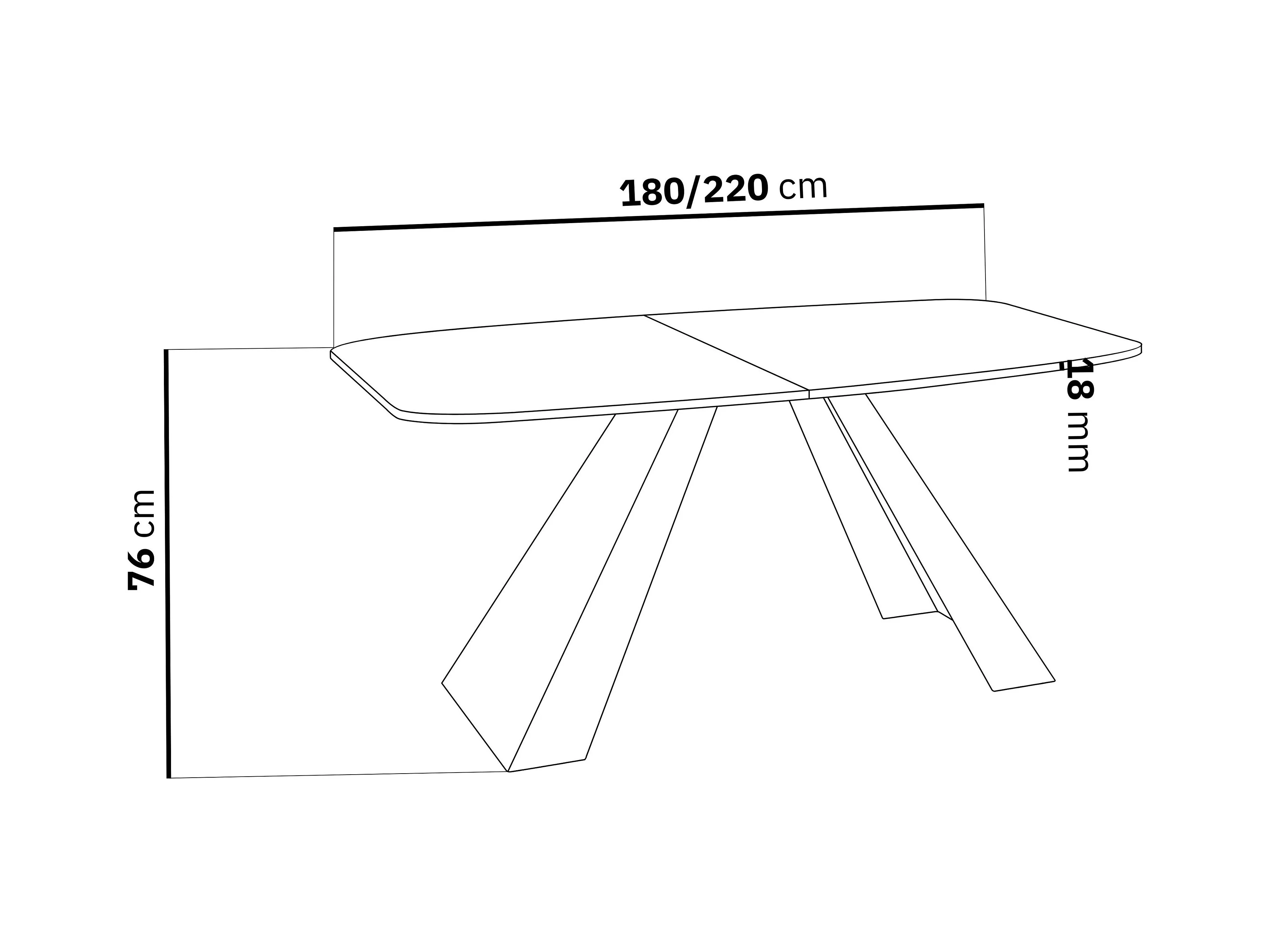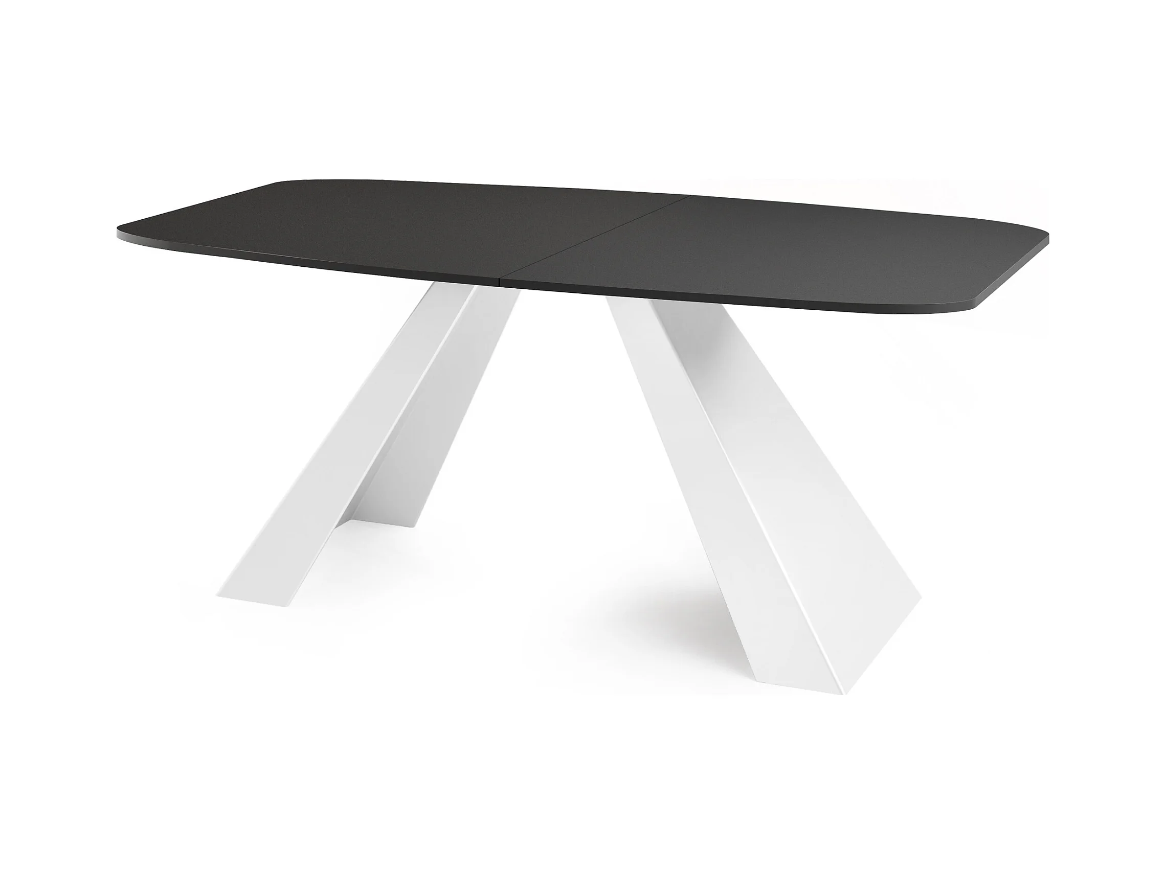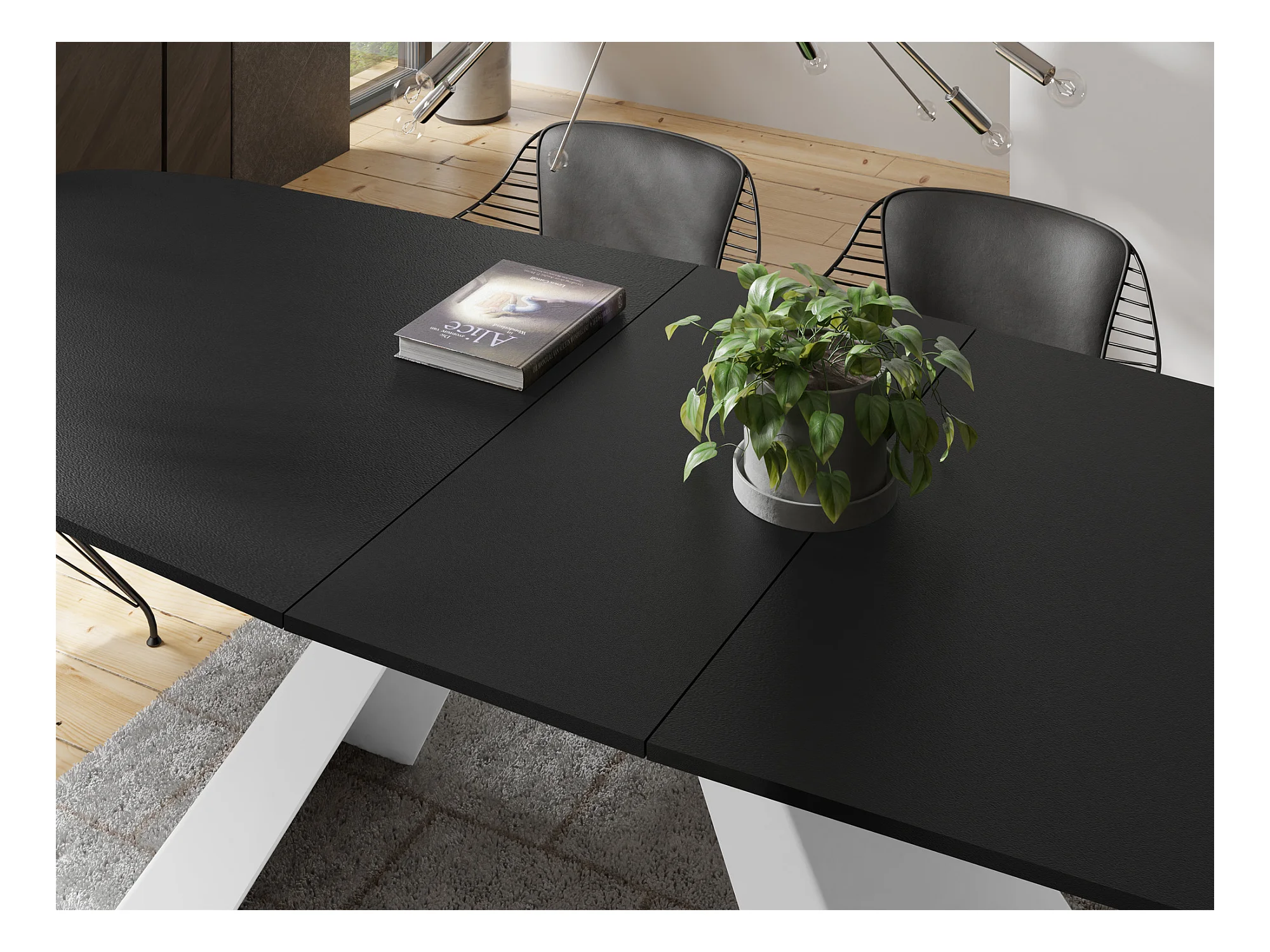 Table-à-Manger Extensible Monte Design Moderne, Table Rectangulaire - Extensible de 180 cm à 220 cm, Pieds Métalliques Blancs - 180x90 cm - Noir