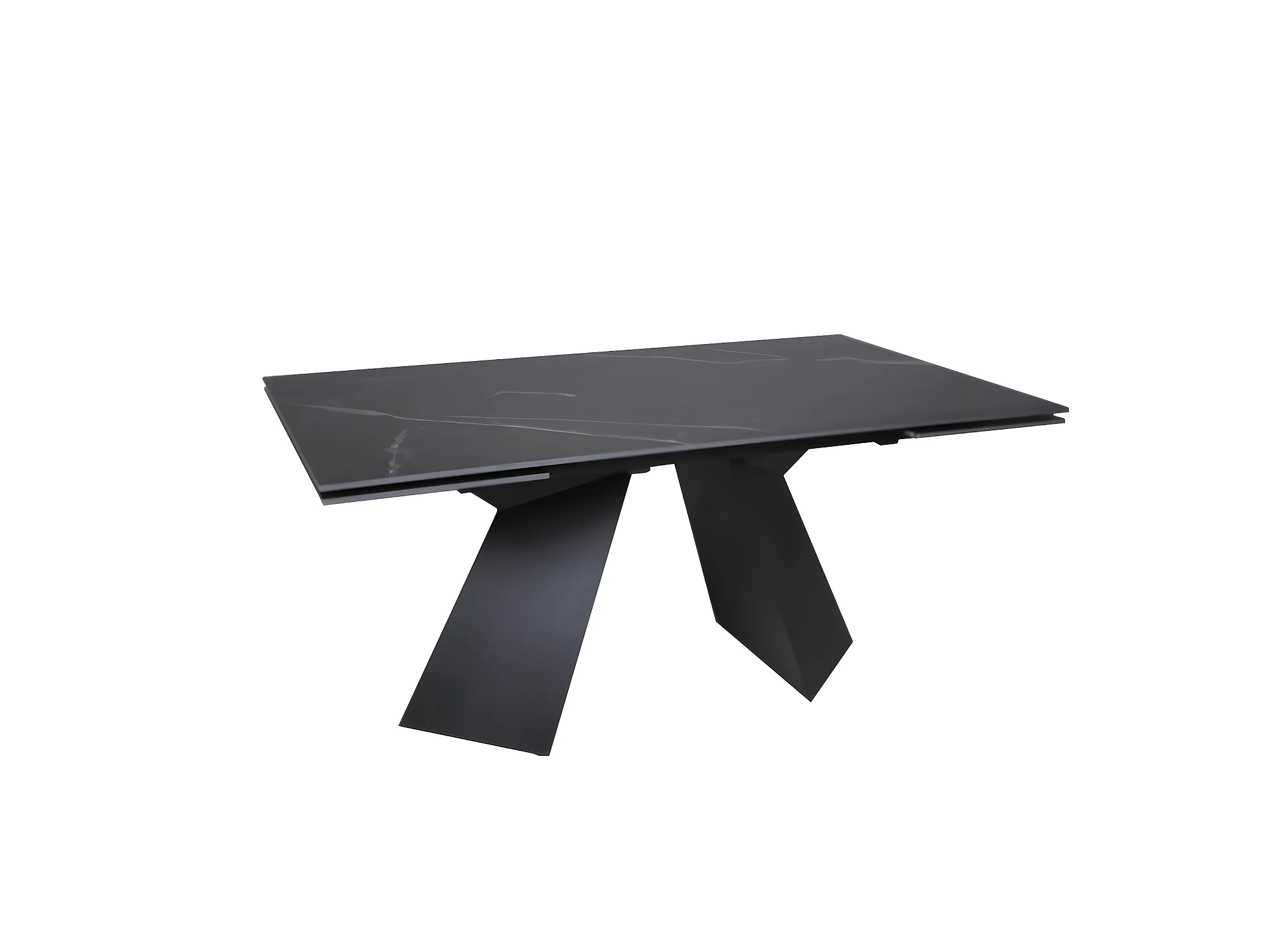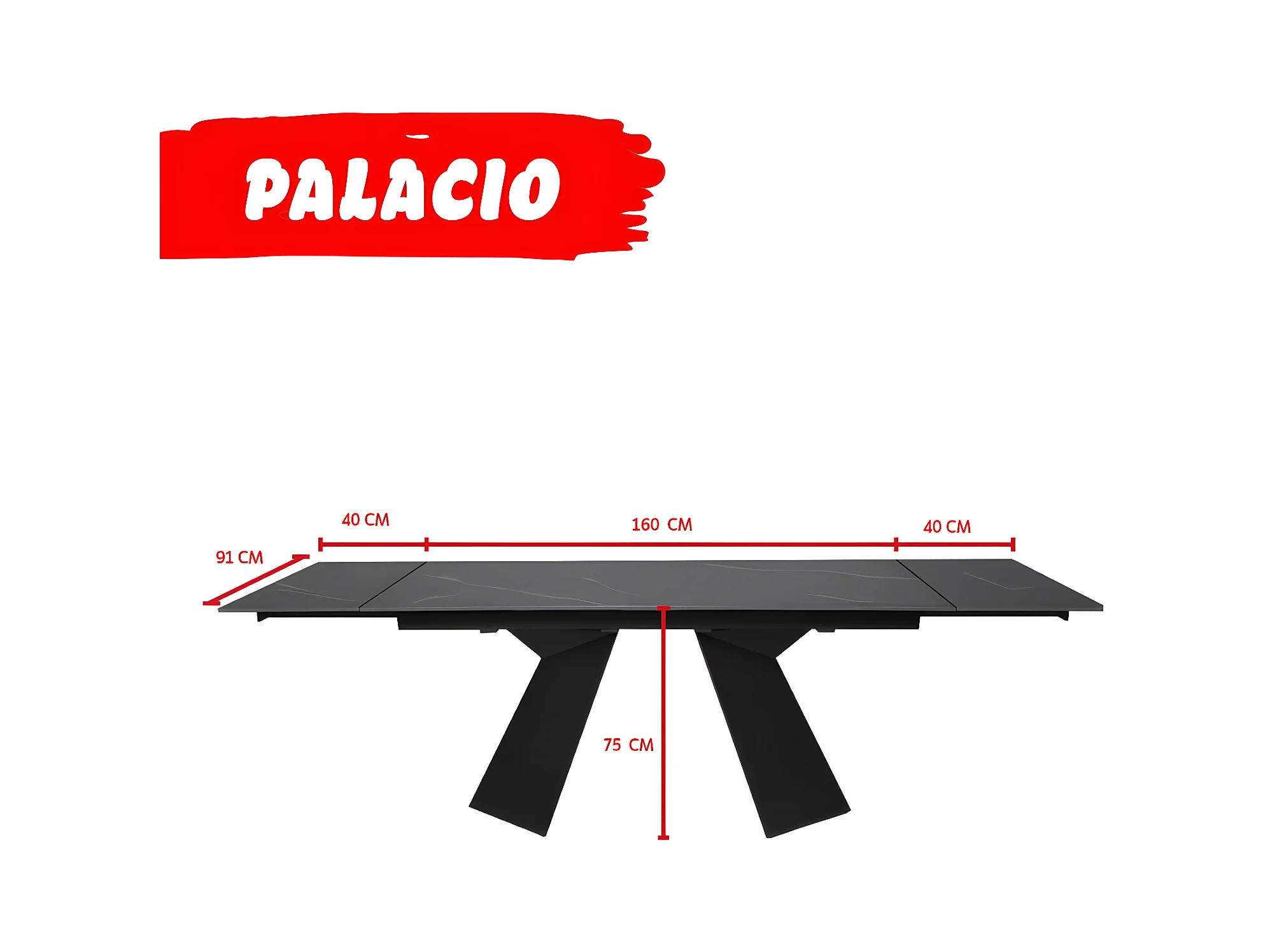 Table à manger extensible en pierre PALACIO 160x90cm + 2 allonges de 40cm - 10 personnes / Noir effet marbre