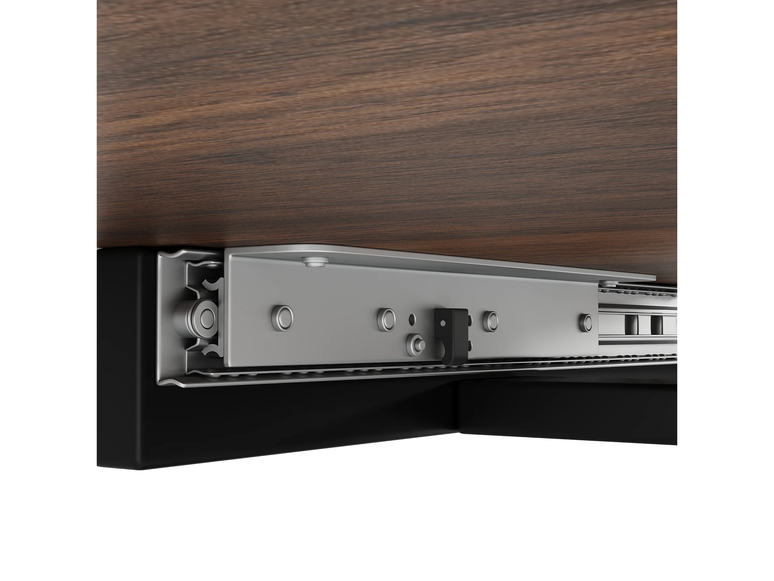 Table à manger extensible rectangle 120-160x80x75cm avec plateau en placage woodgrain marron et pieds noir croisé