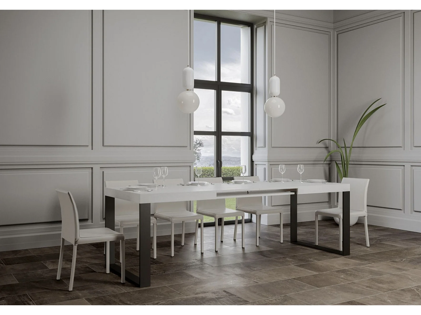 Table à manger extensible Tiroz-Couleur Blanc-4 pieds-5 rallonges fines-160 à 420cm