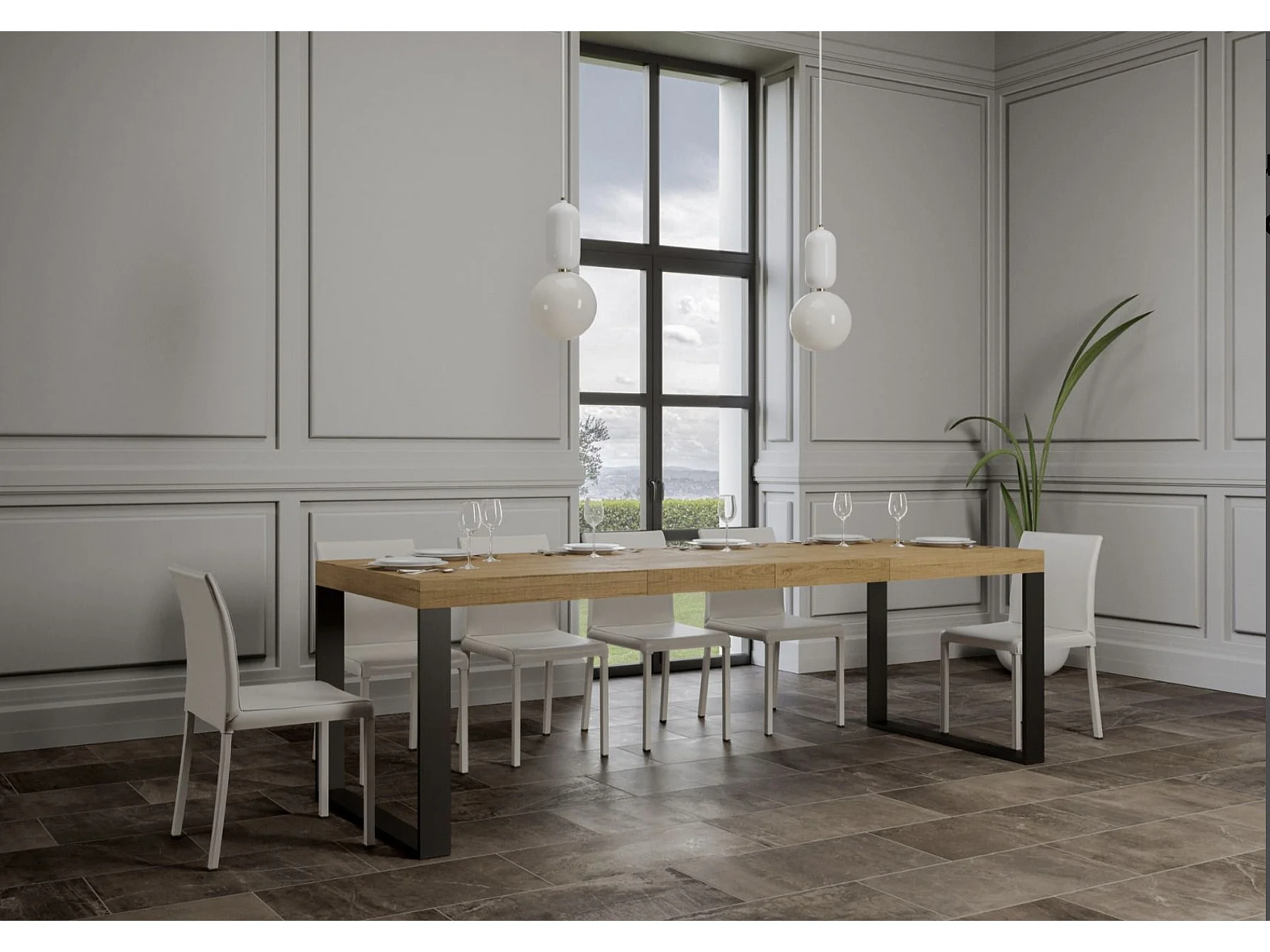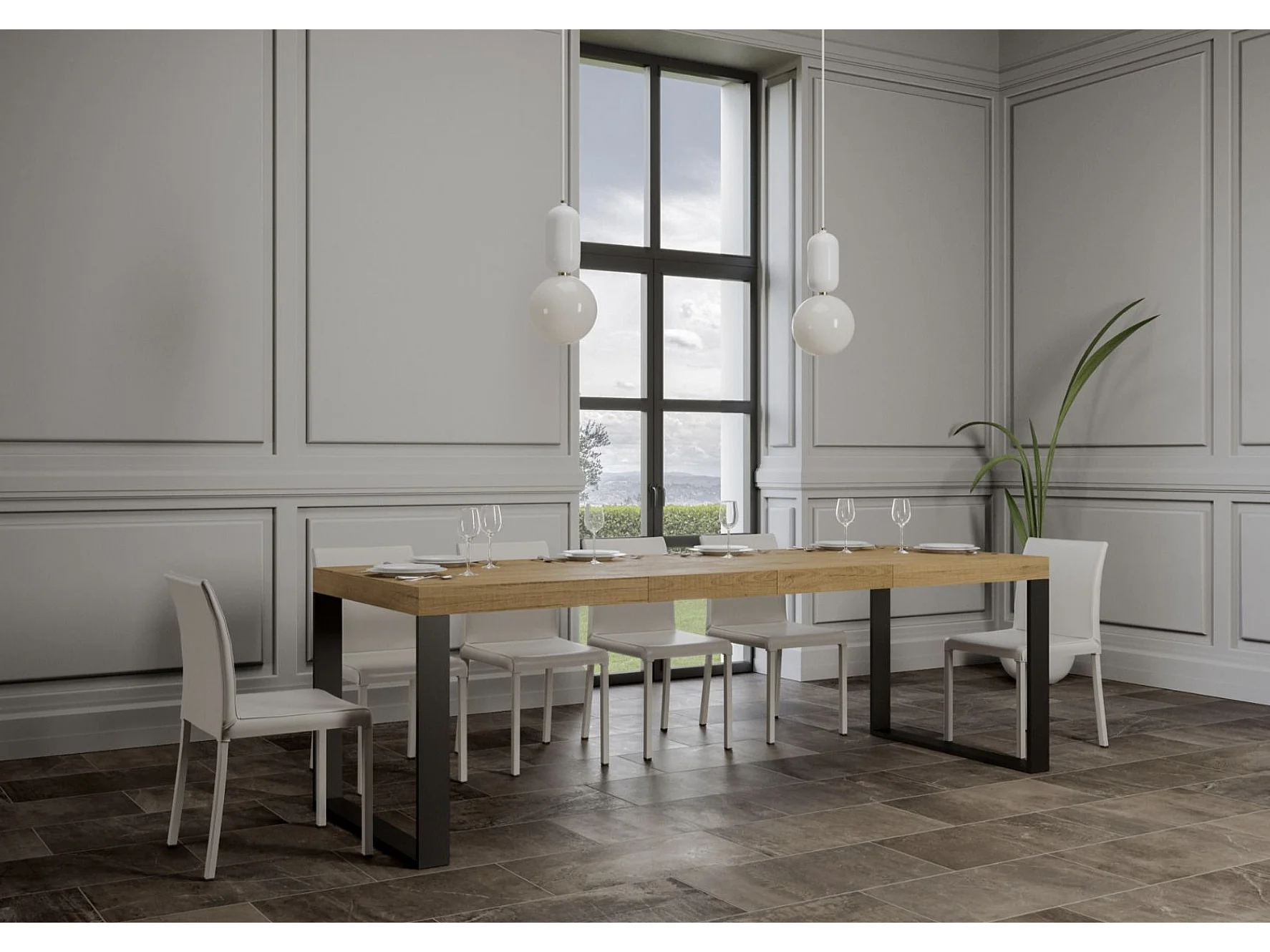 Table à manger extensible Tiroz-Couleur Naturel-4 pieds-2 rallonges épaisses-180 à 284cm