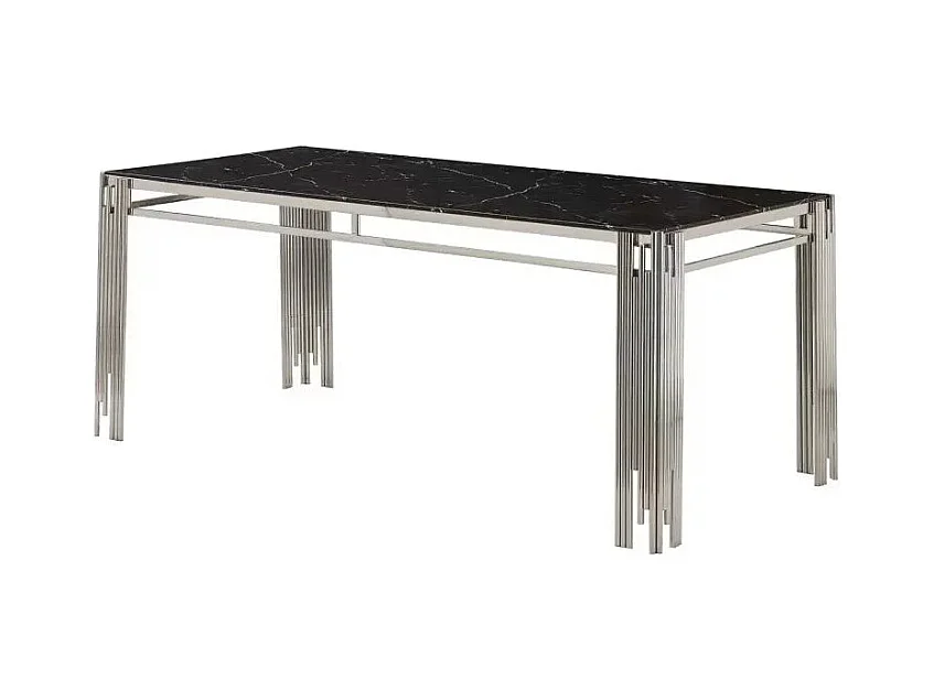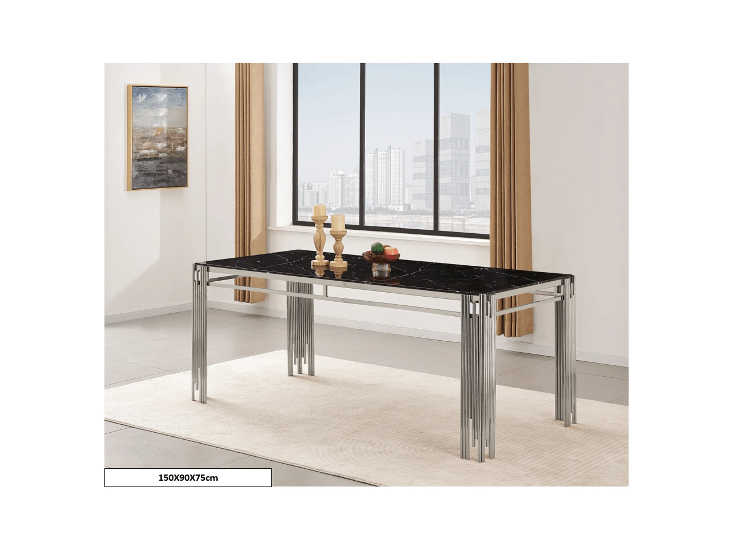 Table à manger FLUTE Chrome Plateau en verre Marbré 150 cm