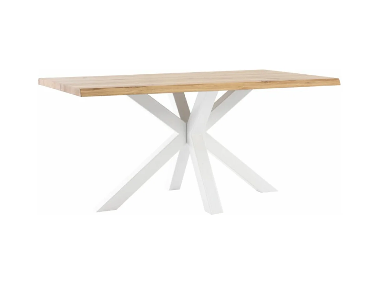 Table à manger industrielle Lany – Chêne massif et pieds métalliques-Couleur Naturel/Blanc-Largeur 140 cm