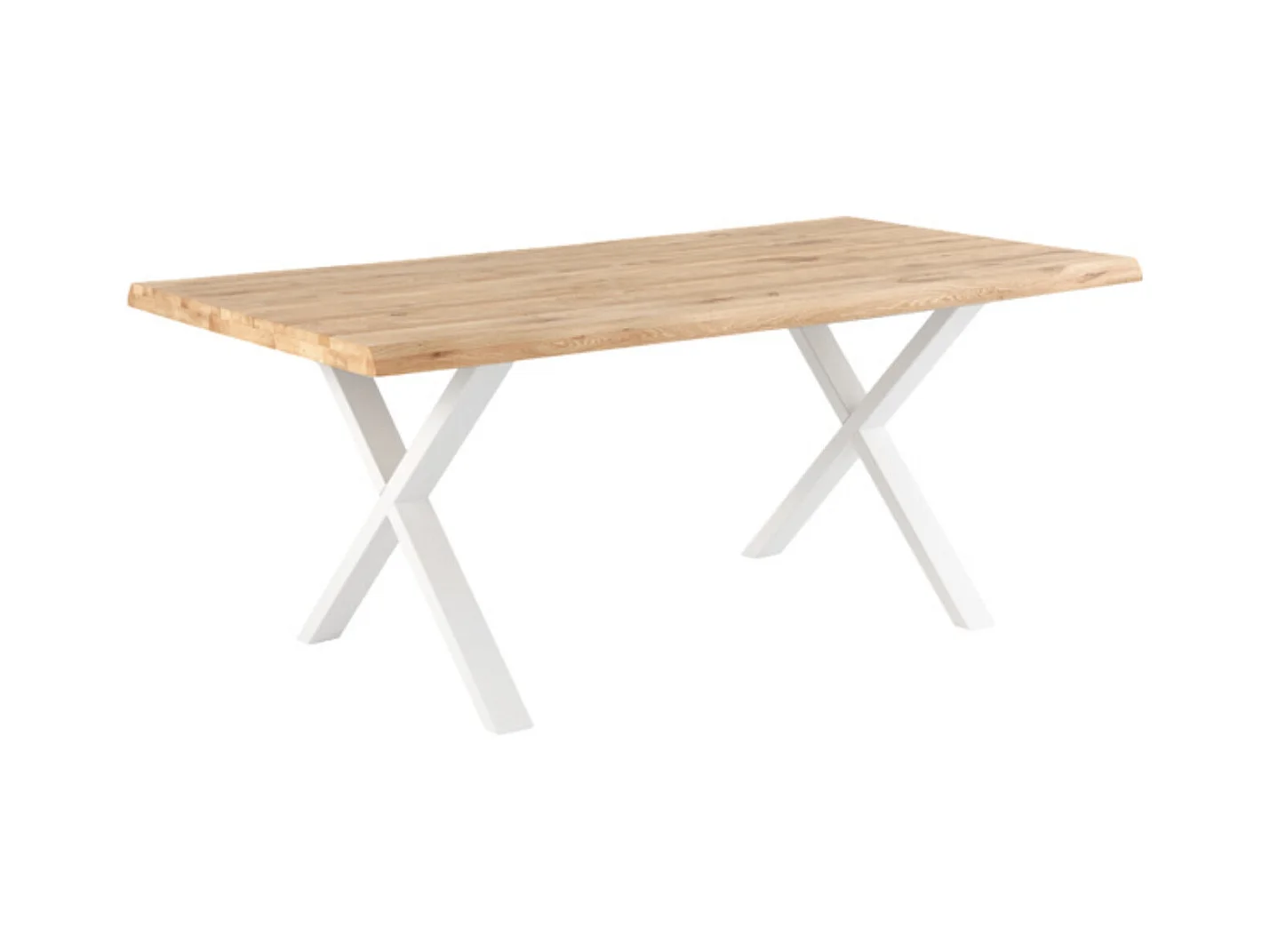 Table à manger industriel chêne massif clair et pieds X métal blanc Antika-Largeur 160 cm
