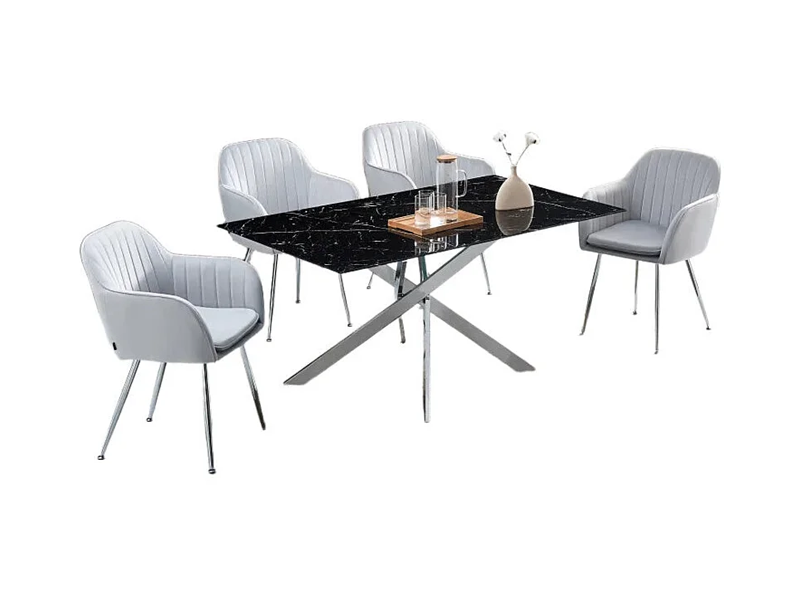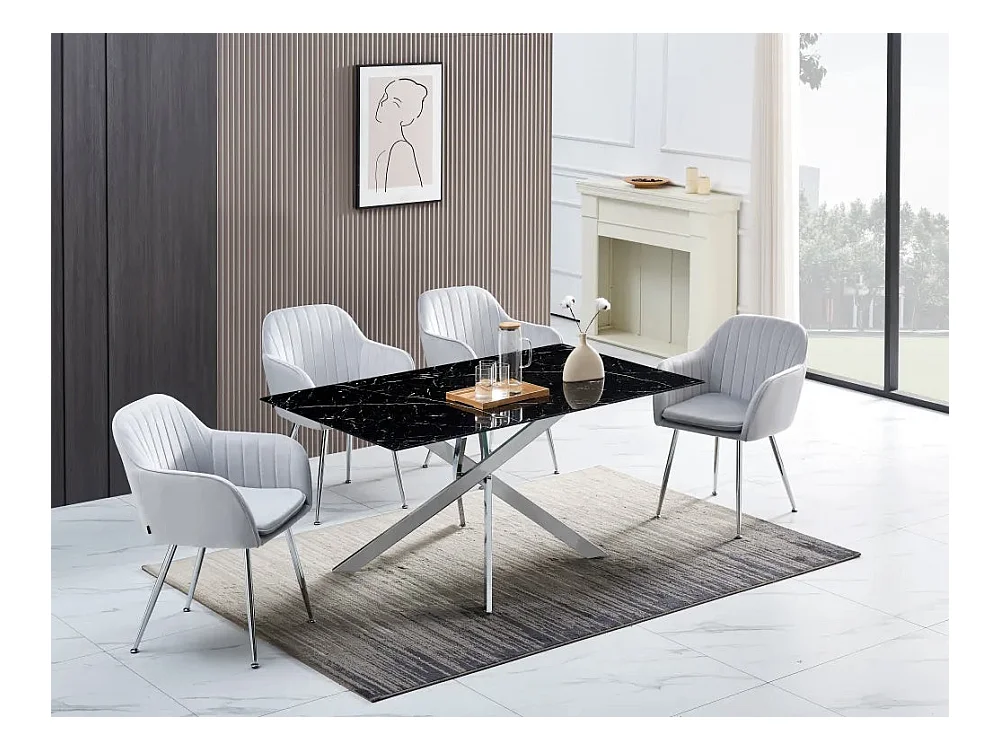Table Repas JESSICA XXL Chrome et plateau en verre MARBRE NOIR 180 cm 6 à 8 couverts