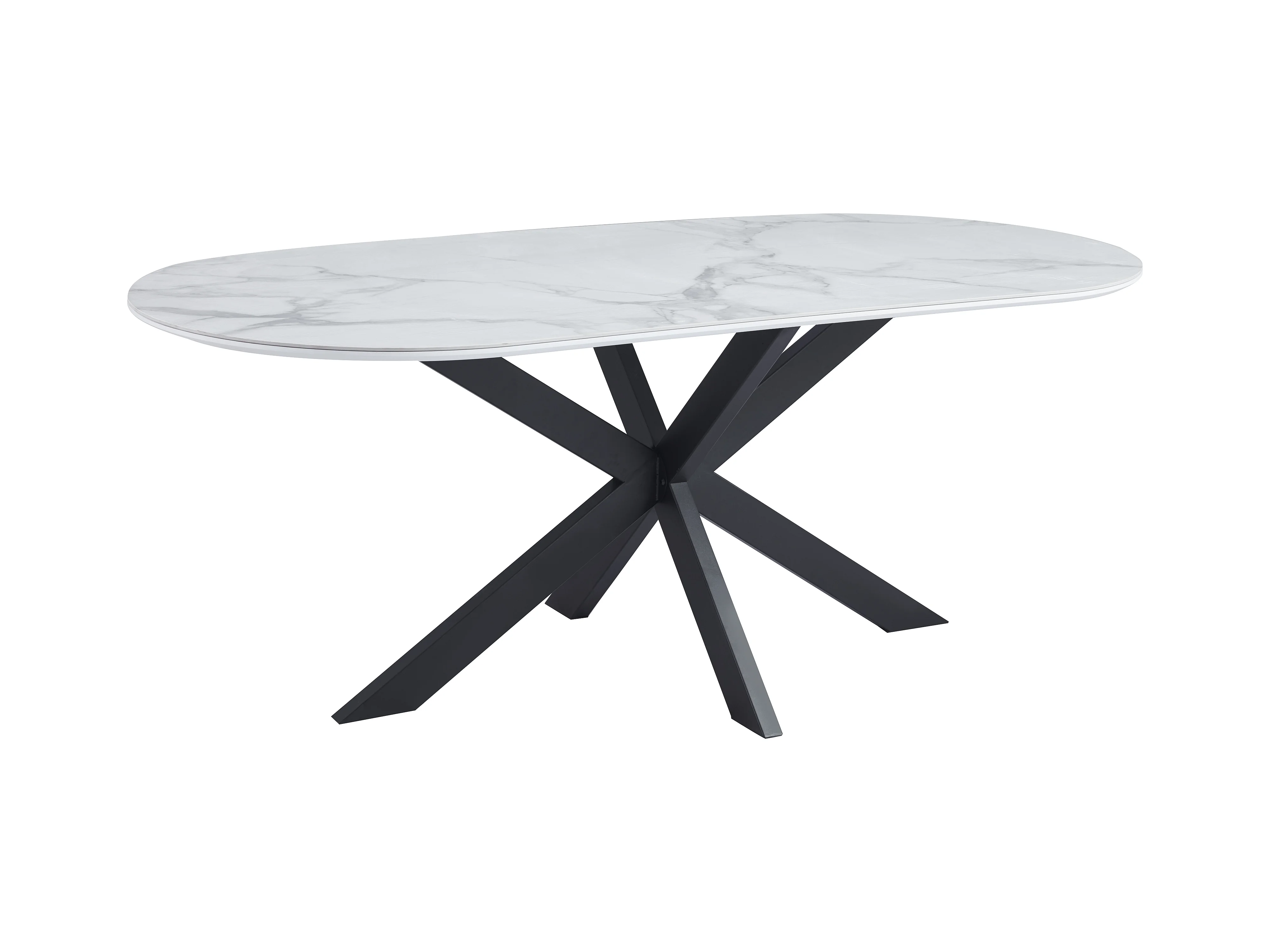 Table à Manger MANON – 200x90 cm – Céramique Marbre Blanc & Pied Métal Noir