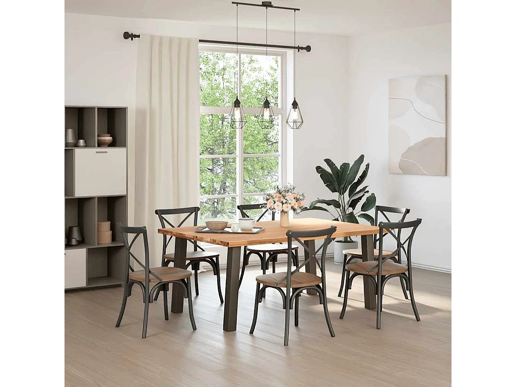 Table à manger marron clair bois de chêne massif rectangulaire