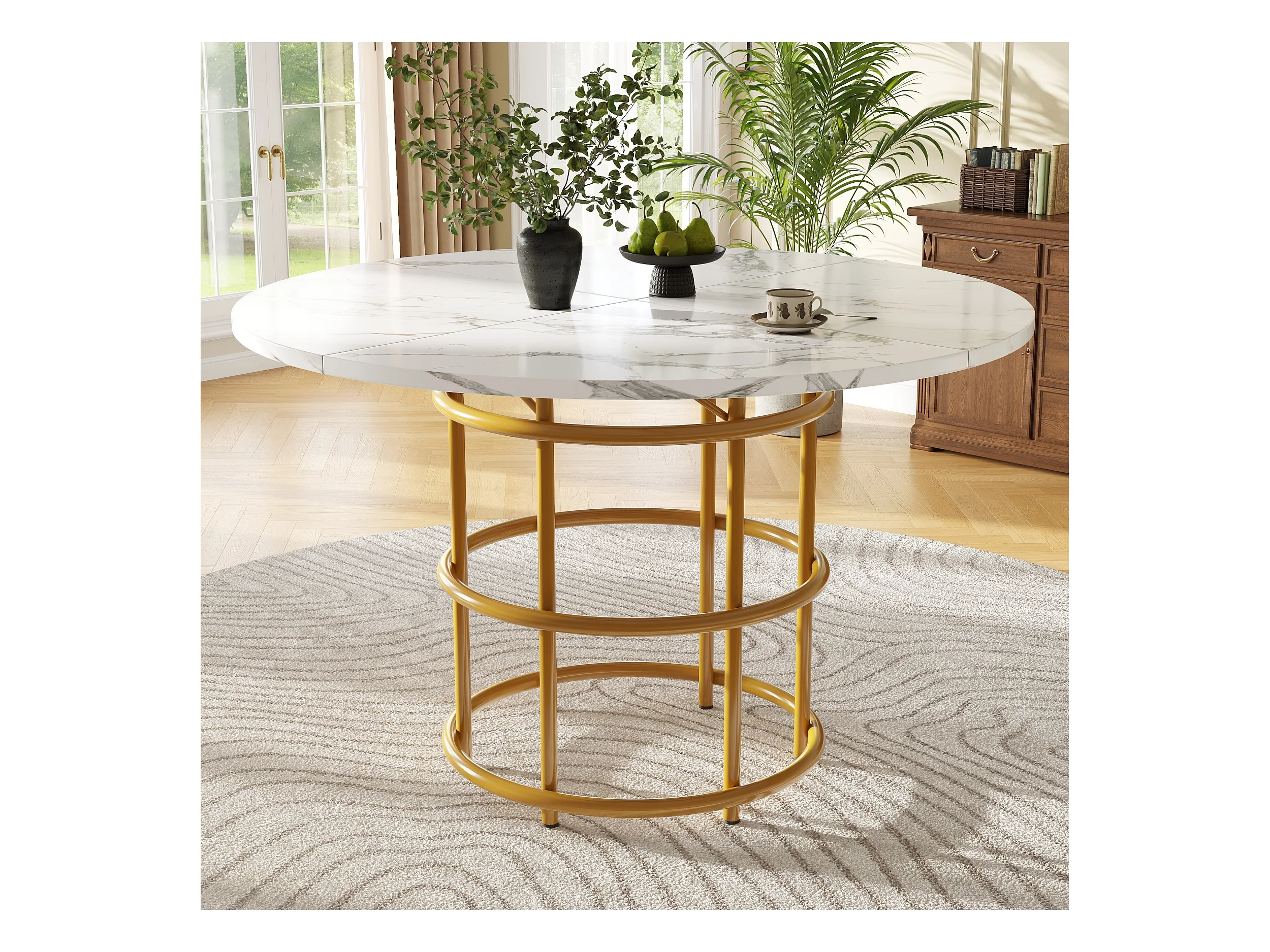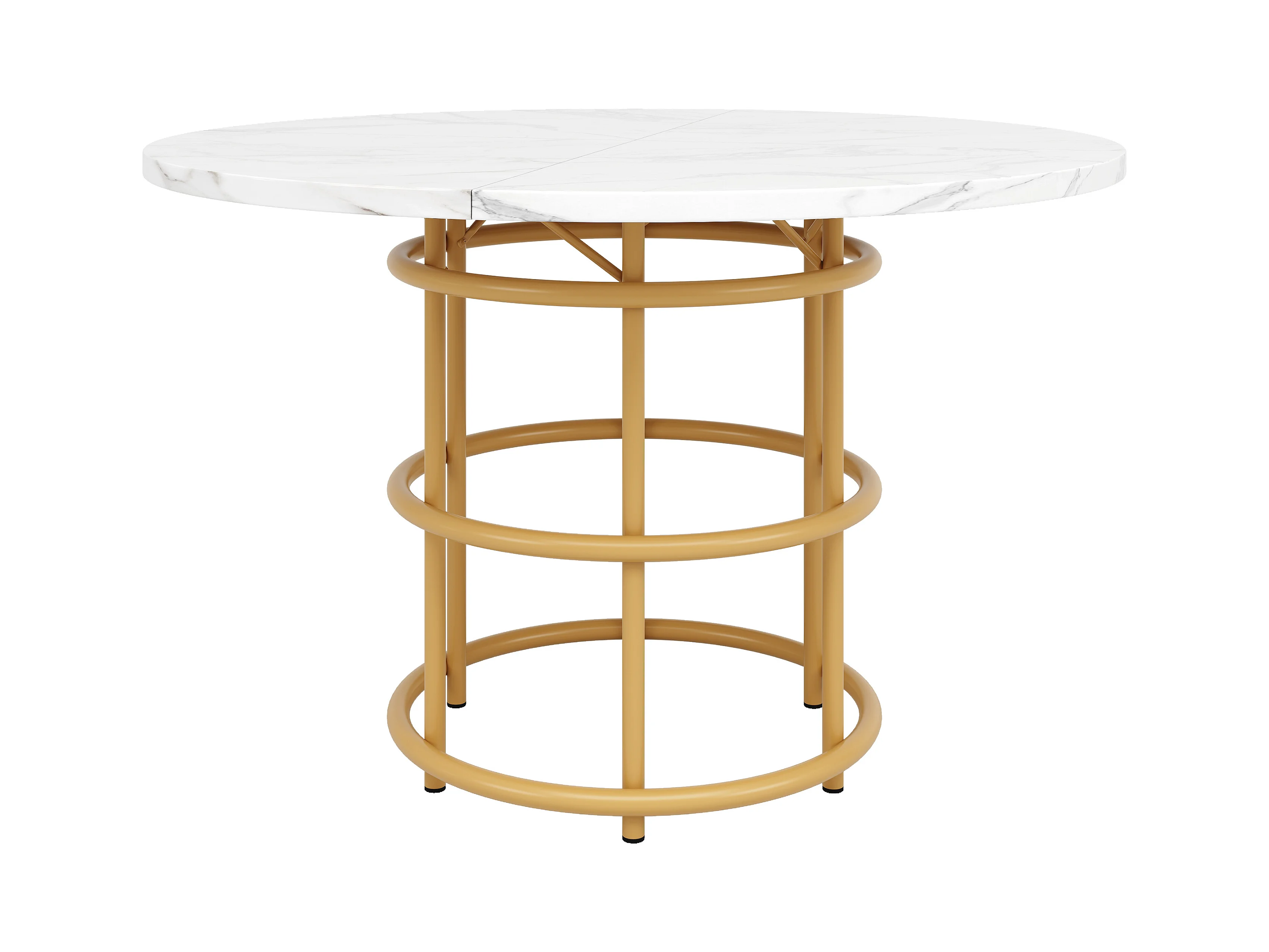 Table à manger moderne - Table à manger ronde avec pieds en anneau doré - plateau en MDF - pour salle à manger et salon