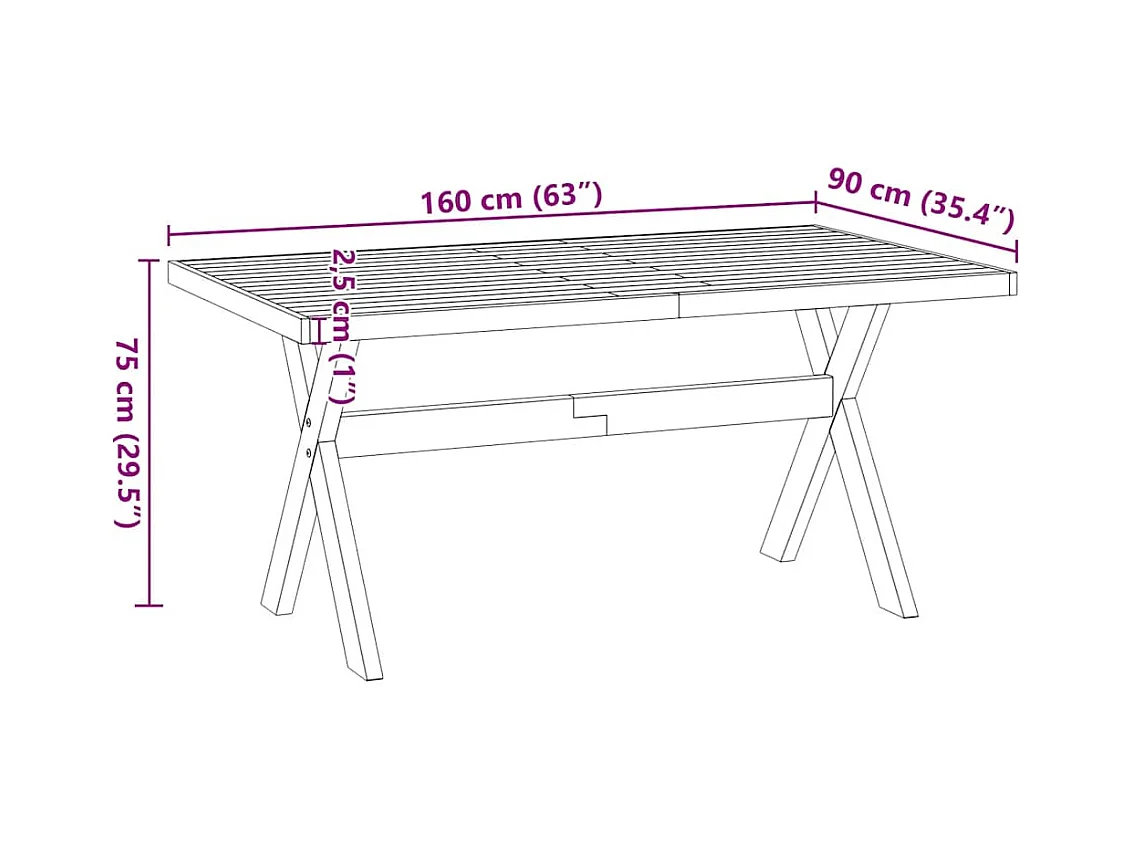 Table à manger NOAIN pieds en forme de X 160x90x75cm massif pin
