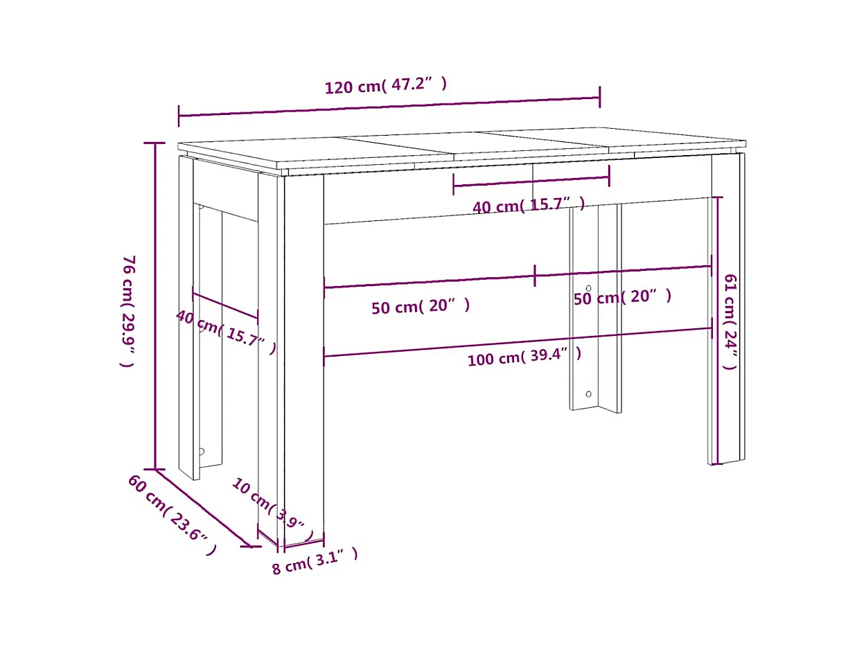 Table à manger Noir 120x60x76 cm Bois d'ingénierie