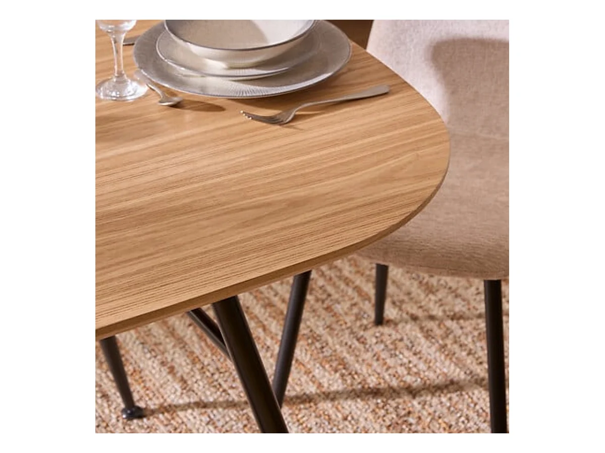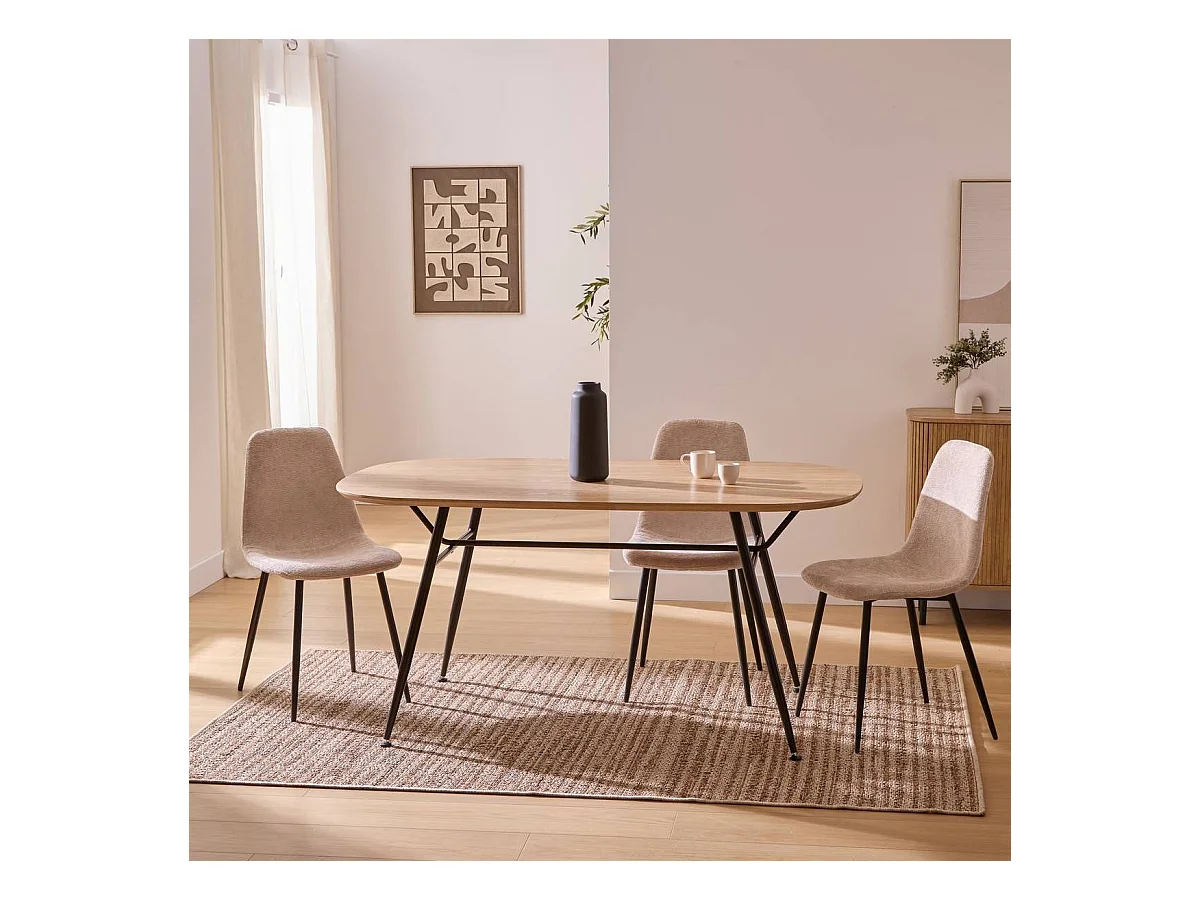 Table à manger ovale avec pieds en métal noir - Longueur 160 x largeur 90 x Hauteur 75 cm