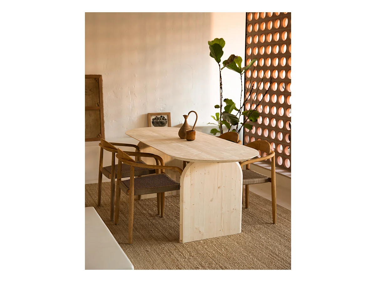 Table à manger ovale en bois de sapin naturel 160x75,2cm - BLOOM - DECOWOOD
