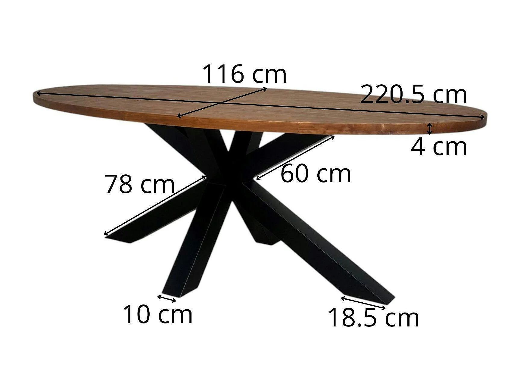Table à manger ovale en bois de teck recyclé 220 cm ONTARIO