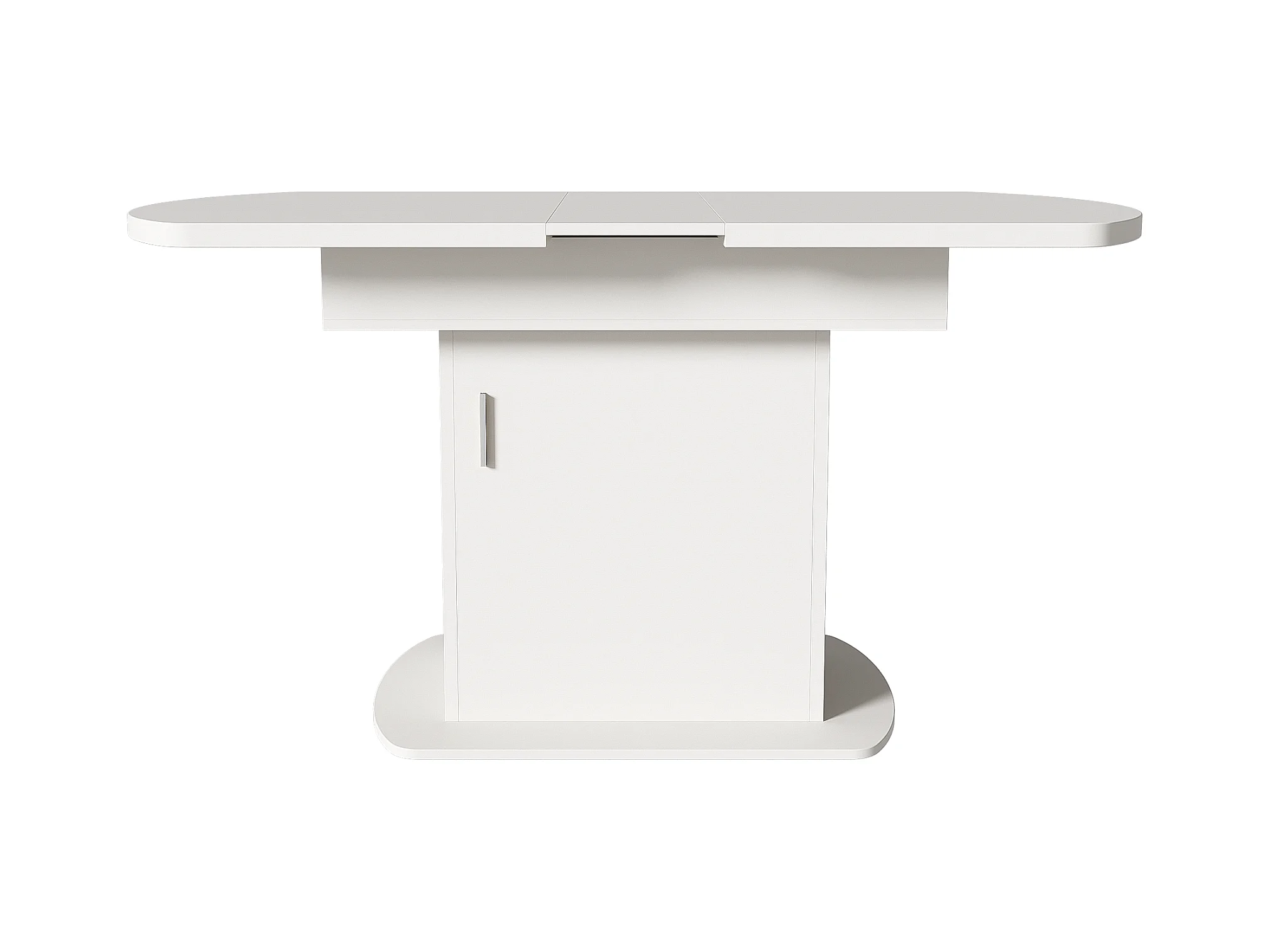 Table à manger ovale escamotable - avec espace de rangement et poignée argentée - Blanc