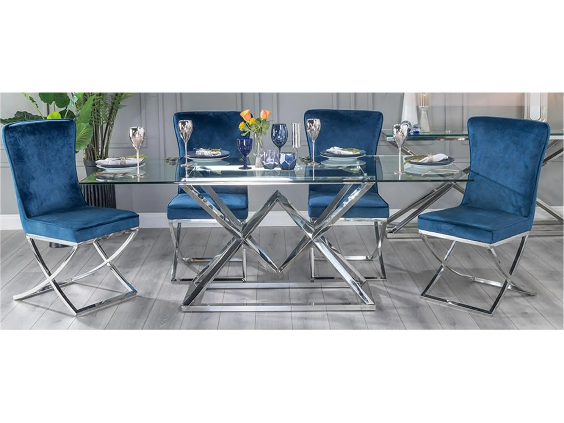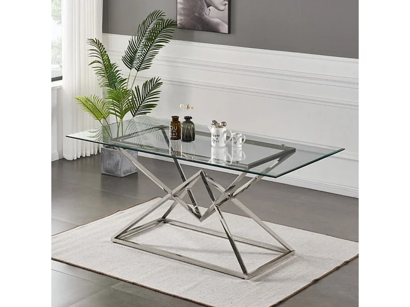 Table à manger PYRAMIDE plateau en verre et structure en Chrome pour 4 à 8 personnes
