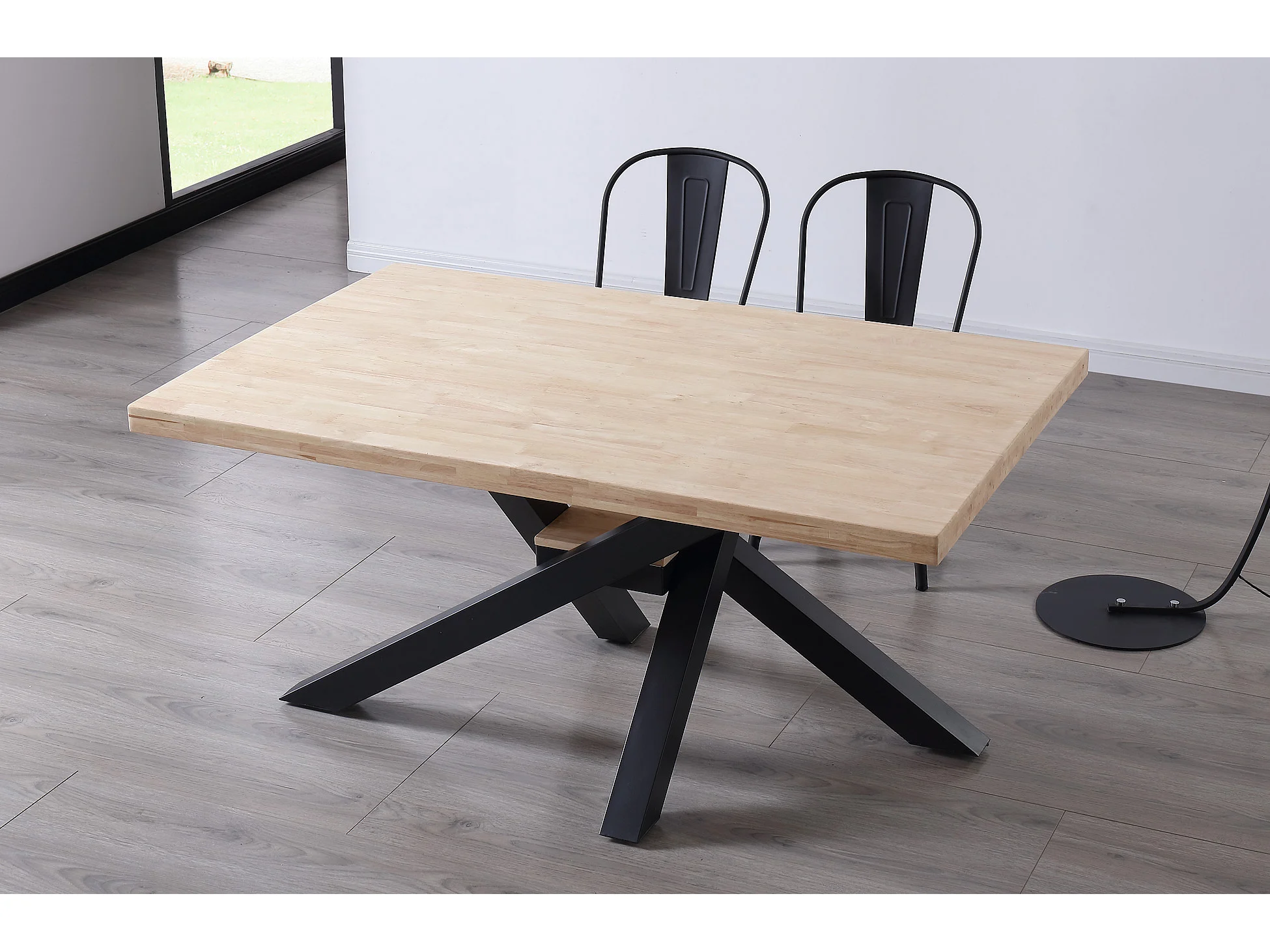 Table à manger rectangulaire en bois de chêne avec pieds en métal noir - Longueur 160 x Profondeur 100 x Hauteur 76 cm