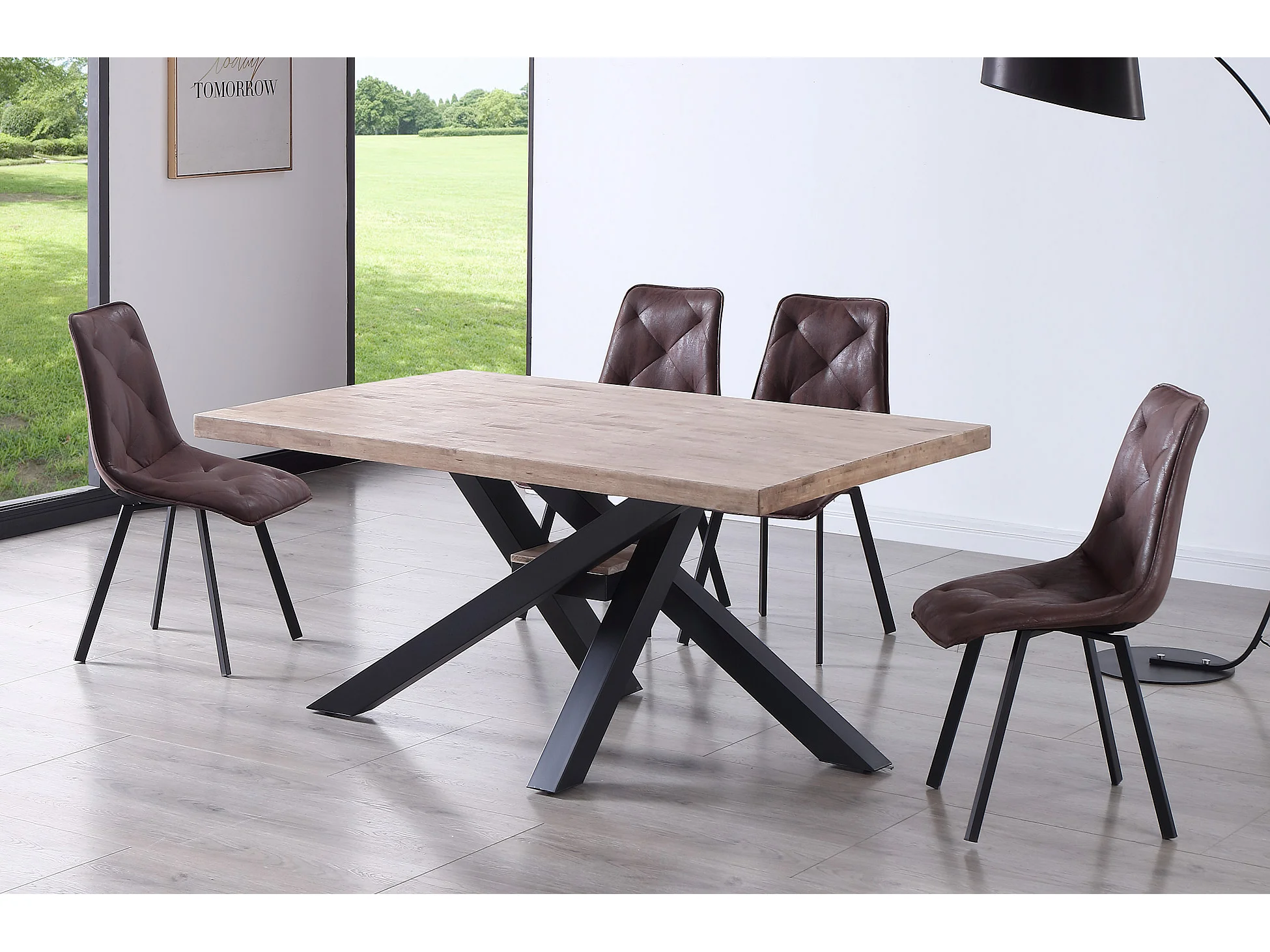 Table à manger rectangulaire en bois de chêne miel avec pieds en métal noir - Longueur 160 x Profondeur 100 x Hauteur 76 cm