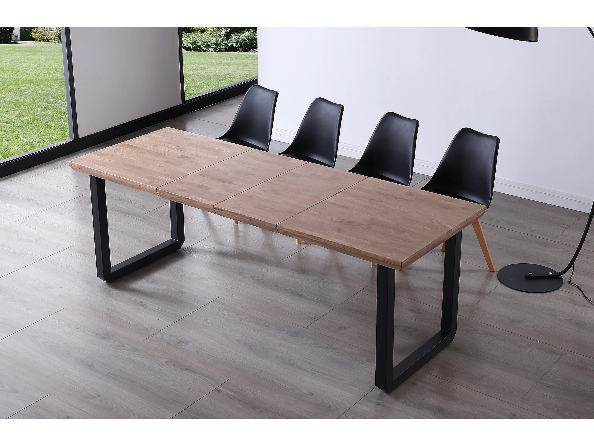 Table à manger rectangulaire extensible en bois coloris chêne miel pieds noir - longueur 140-220 x profondeur 80 x hauteur 77 cm