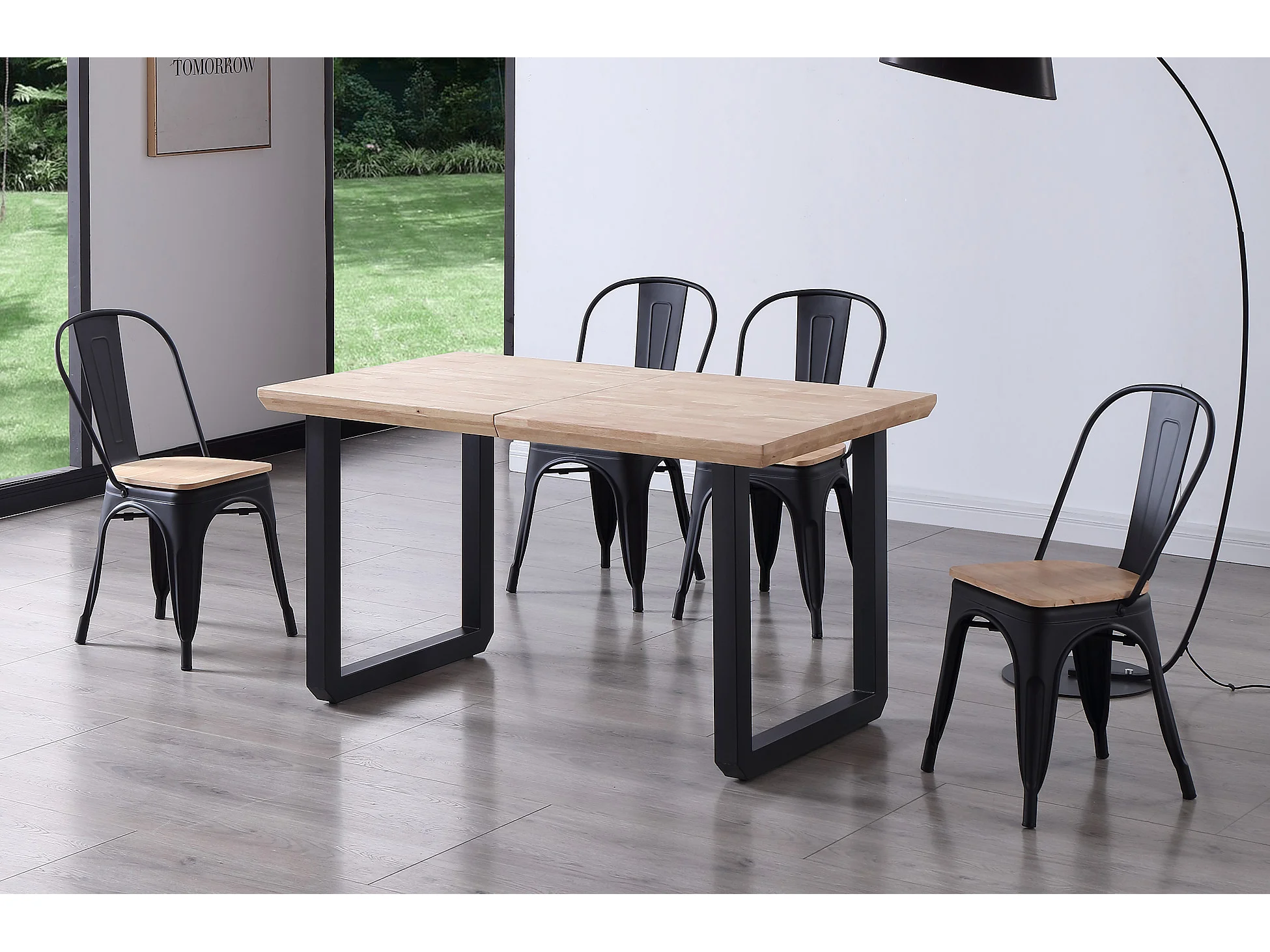 Table à manger rectangulaire extensible en bois coloris chêne nordique pieds noir - longueur 140-220 x profondeur 80 x hauteur 77 cm