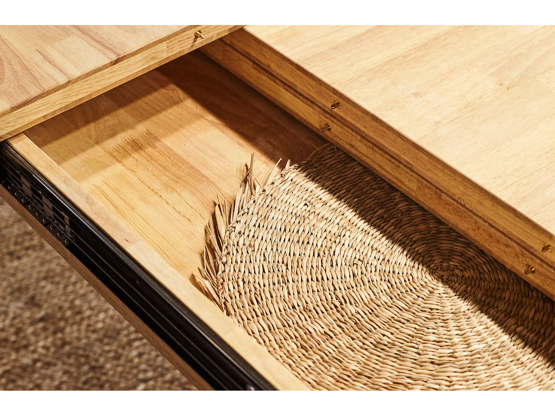 Table à manger rectangulaire extensible en bois coloris chêne / pieds noir