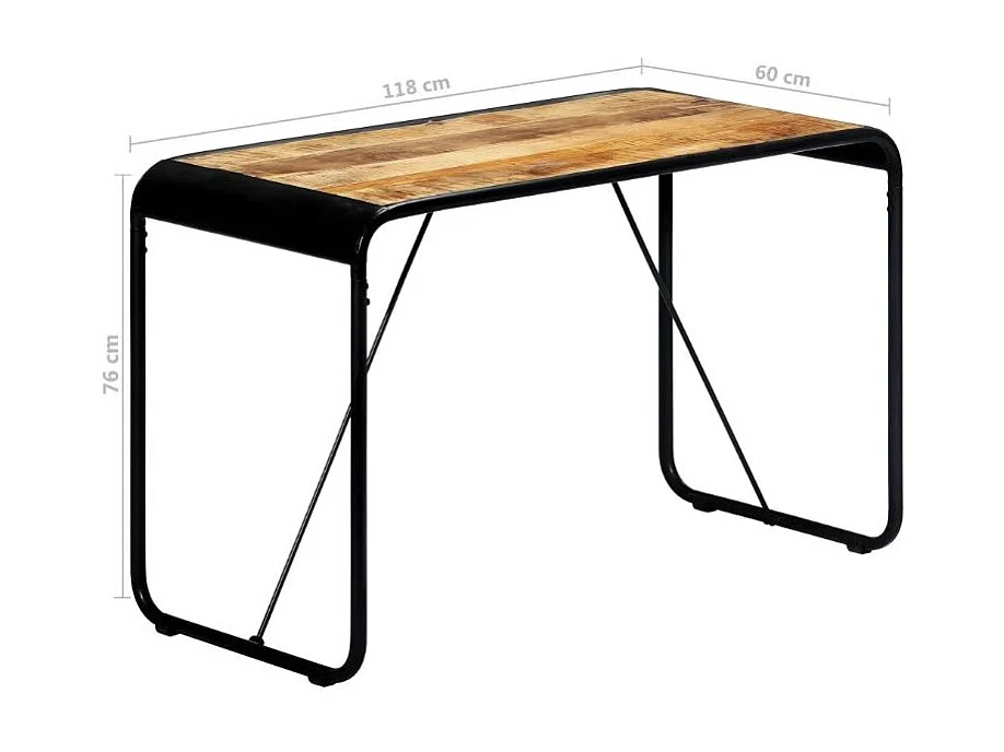 Table à manger rectangulaire manguier massif clair et métal noir Illico 118cm