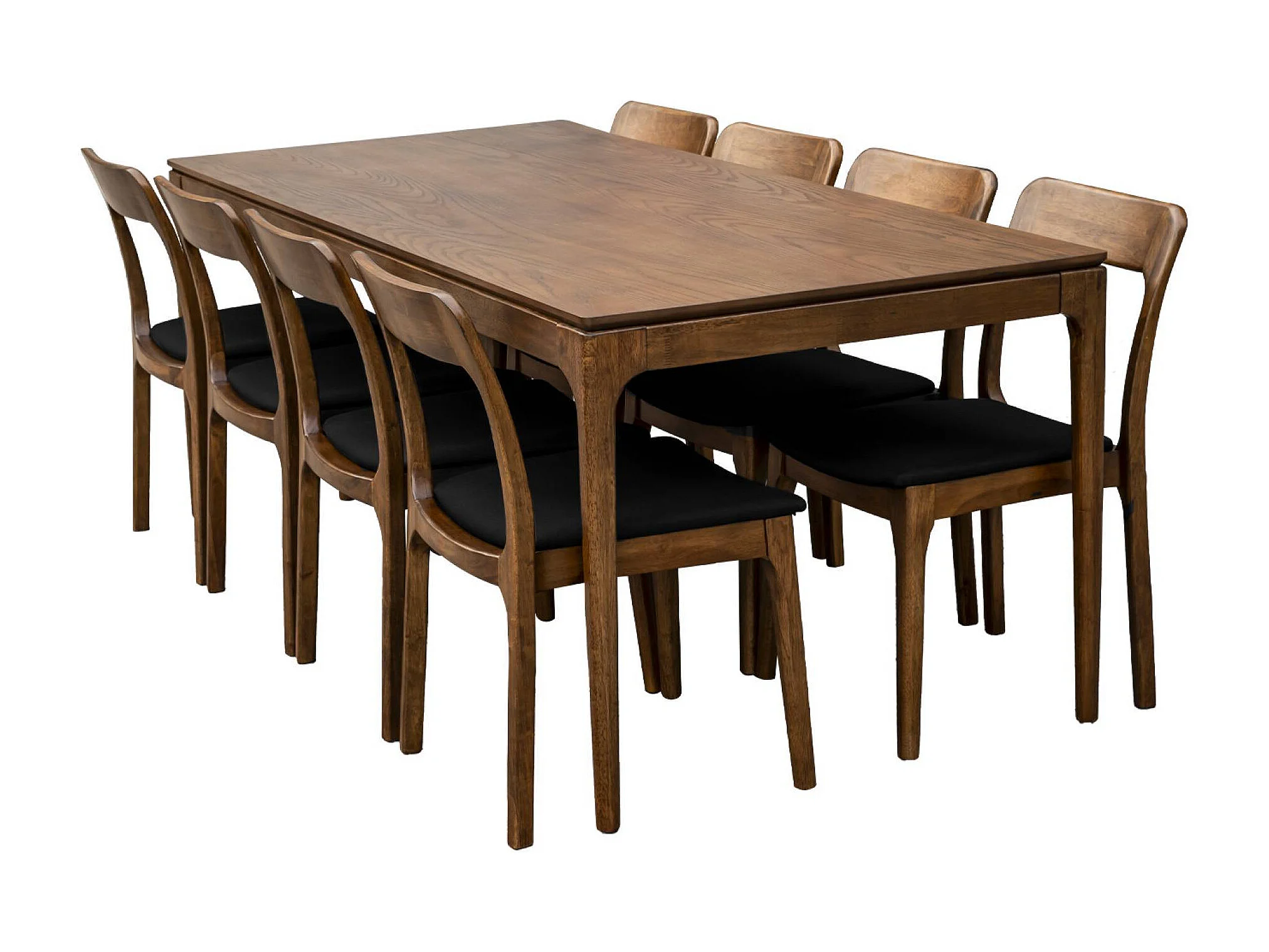 Table à manger rectangulaire noyer bois d'hévéa et placage frêne 8 places Elena